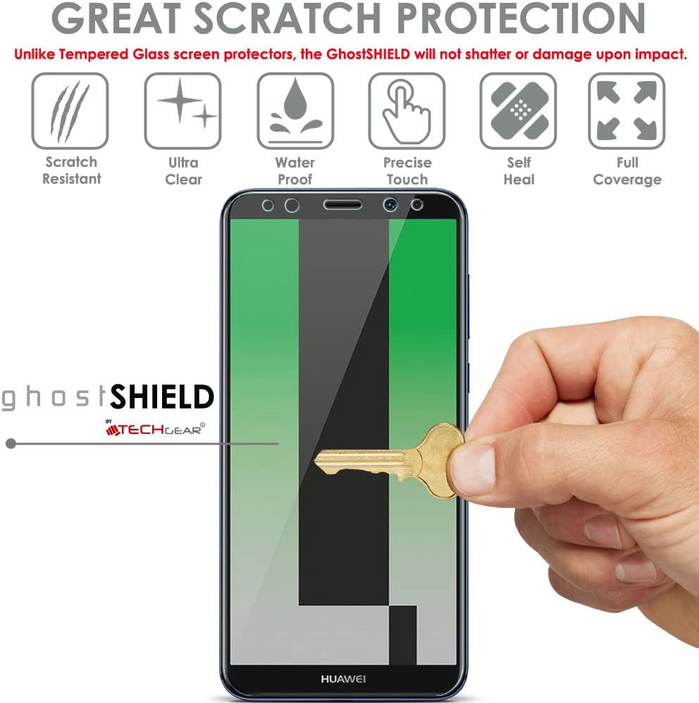 [2 Pack] TECHGEAR Screen Protectors to fit Huawei Mate 10 Lite [ghostSHIELD Edition]Reinforced Flexible TPU Screen Protector with Full Screen Coverage