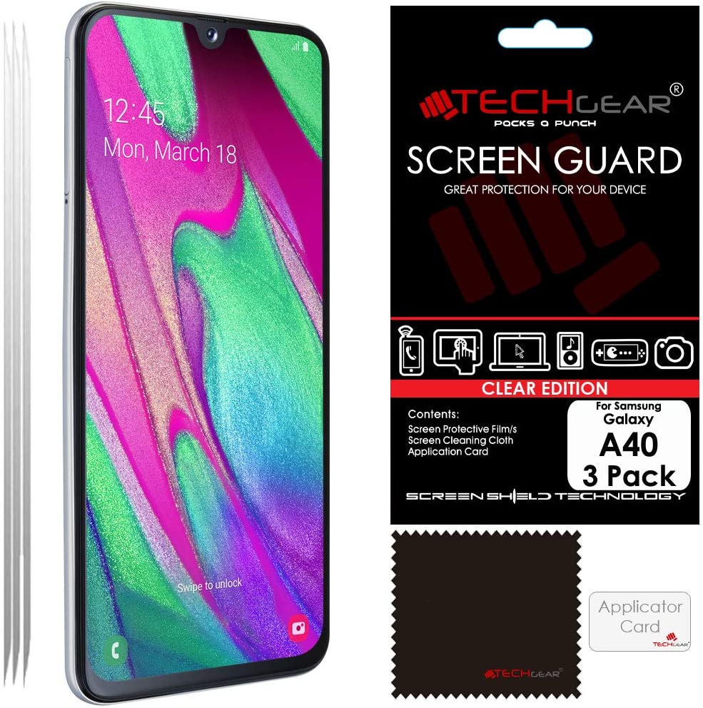[3 Pack] TECHGEAR Screen Protectors Compatible with Samsung Galaxy A40, CLEAR LCD Screen Protectors Cover Guards
