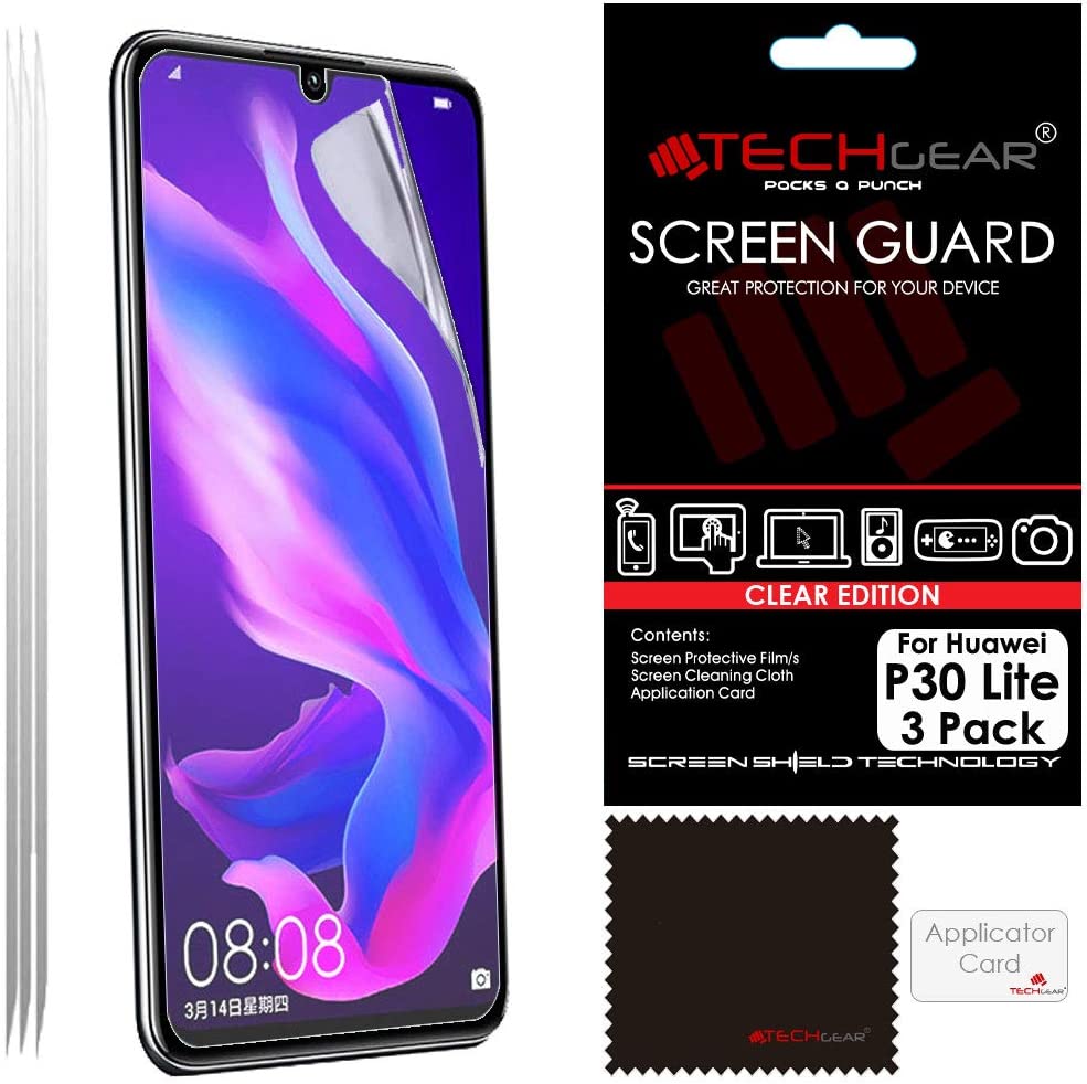[3 Pack] TECHGEAR Screen Protectors fits Huawei P30 Lite, CLEAR LCD Film Screen Protectors Cover Guards Compatible with Huawei P30 Lite
