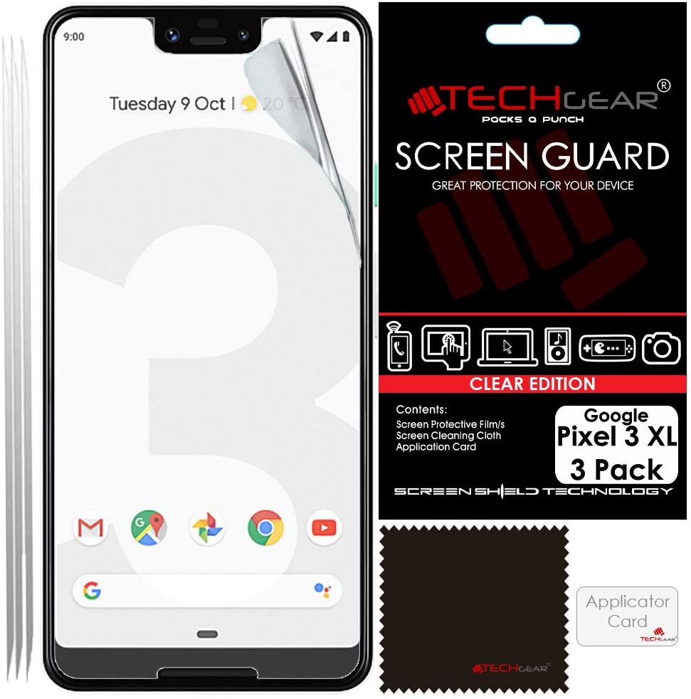 [3 Pack] TECHGEAR Screen Protectors for Pixel 3 XL- Clear Lcd Screen Protector with Cleaning Cloth & Application Card