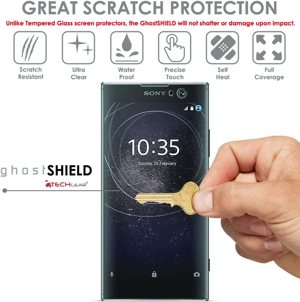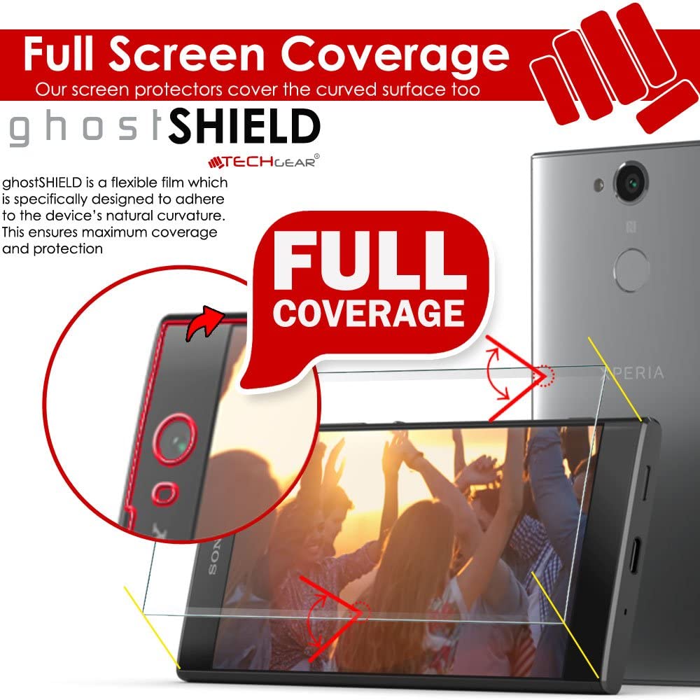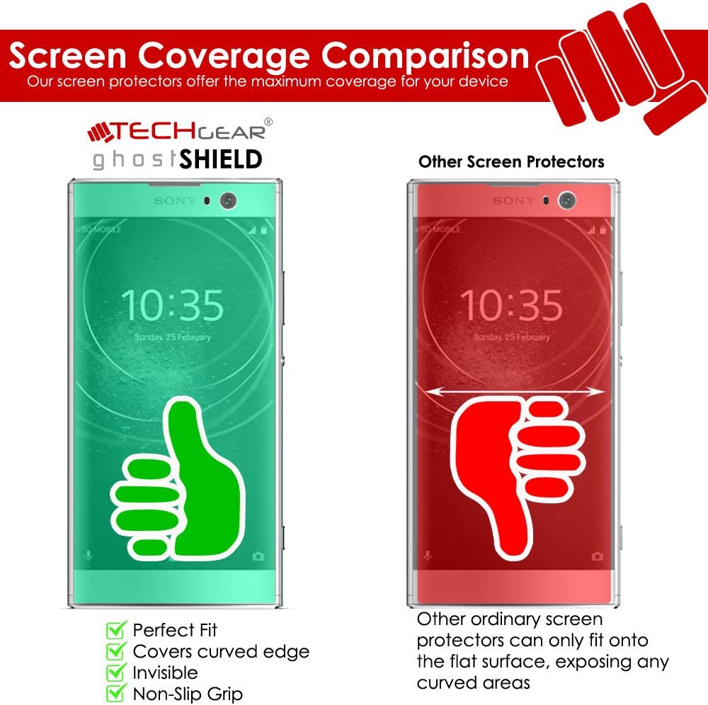 [3 Pack] TECHGEAR Screen Protectors to fit Sony Xperia XA2 [ghostSHIELD Edition] TPU Screen Protector with Full Screen Coverage inc Curved Screen