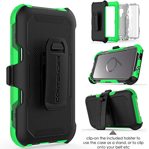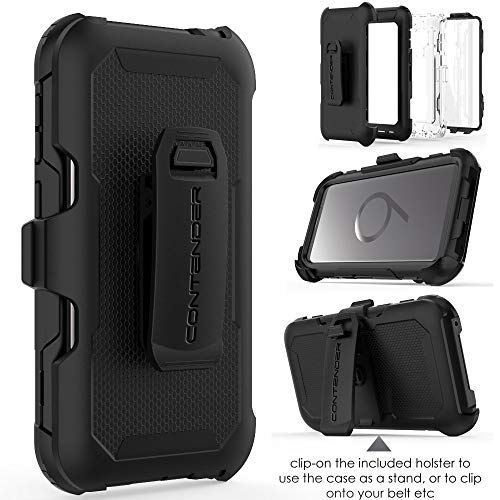 [Contender Case] Samsung Galaxy S9 Plus Heavy Duty Case with Built-in Screen Protector, 360 [Full Body] Protective Cover with Kick Stand