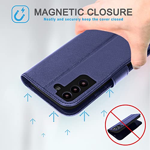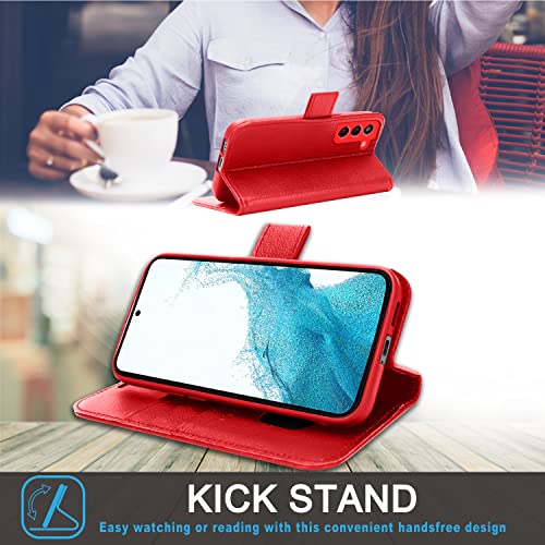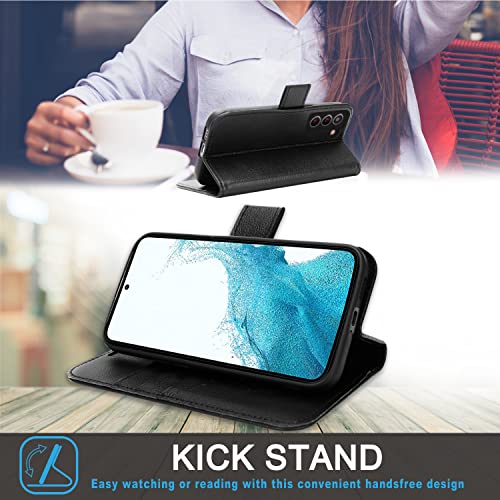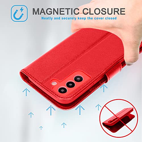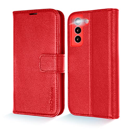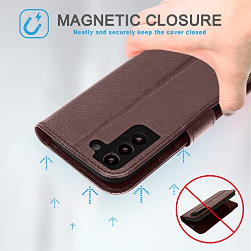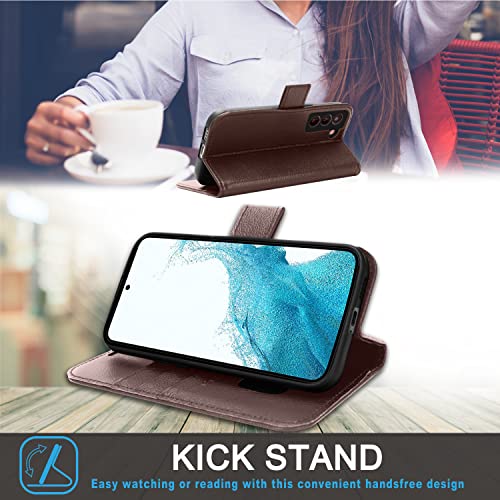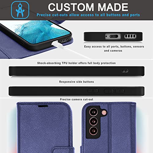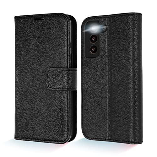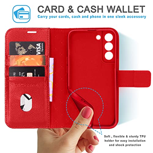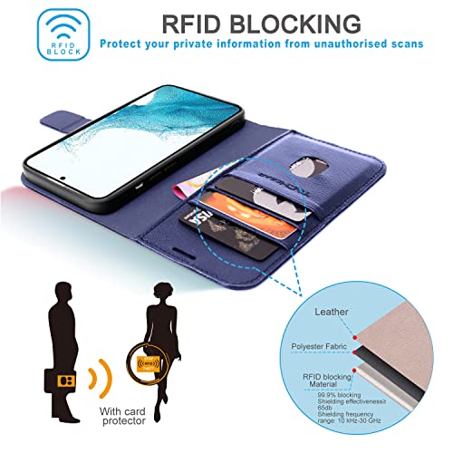[Leather Wallet Case] Genuine Leather [RFID Blocking] Magnetic Flip Case with Card & Slots and Stand For Samsung Galaxy S22