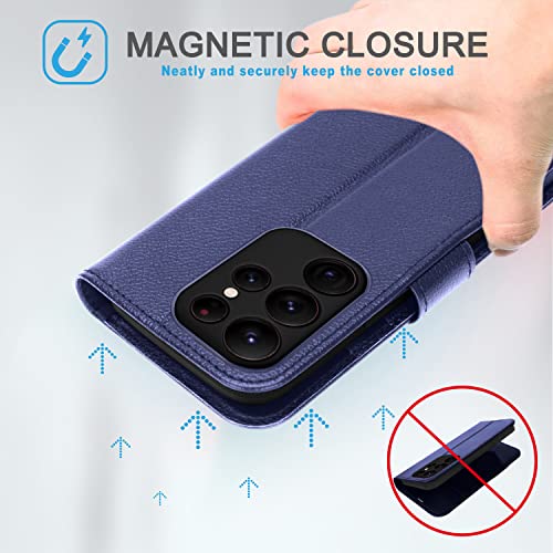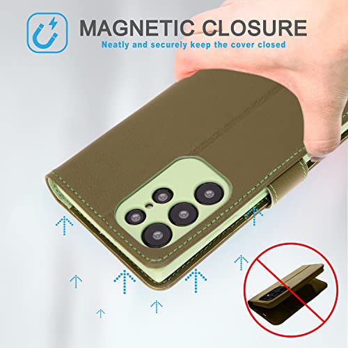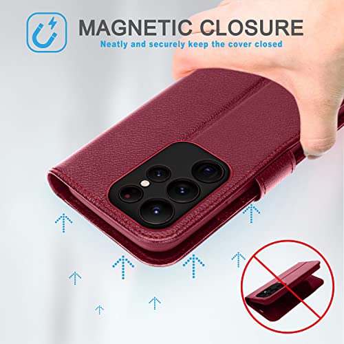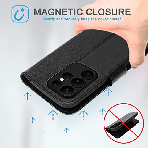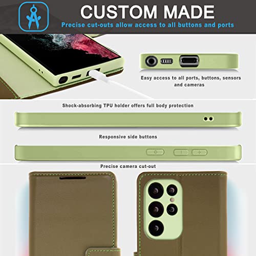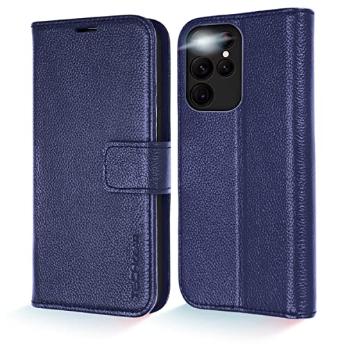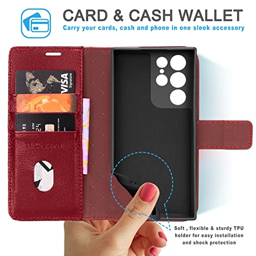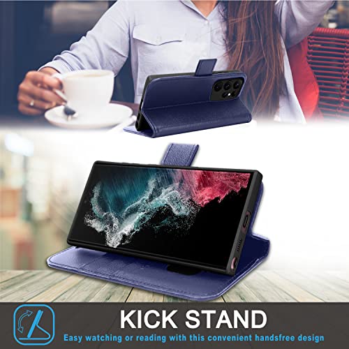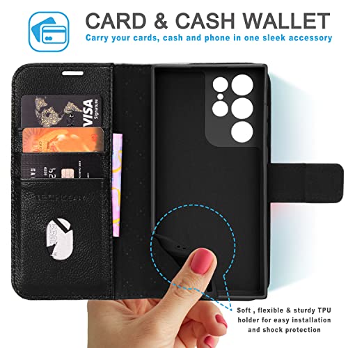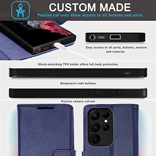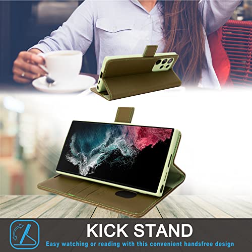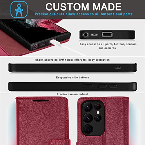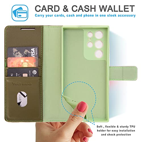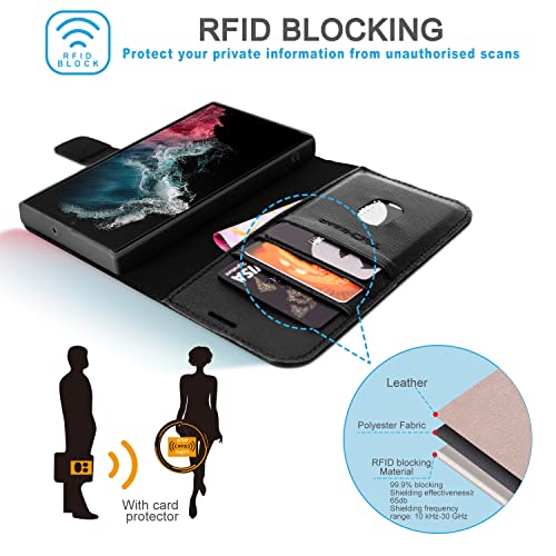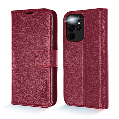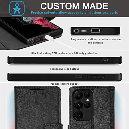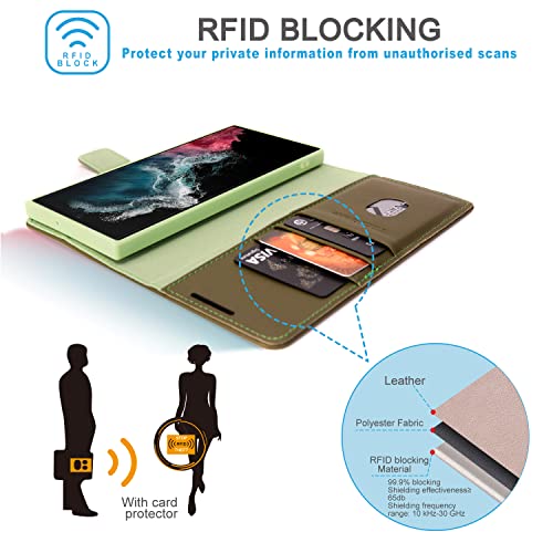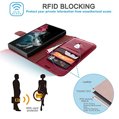 [Leather Wallet Case] Genuine Leather [RFID Blocking] Magnetic Flip Case with Card & Slots and Stand For Samsung Galaxy S22 Ultra