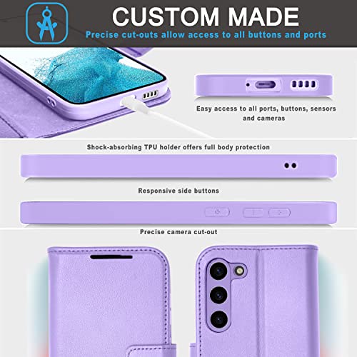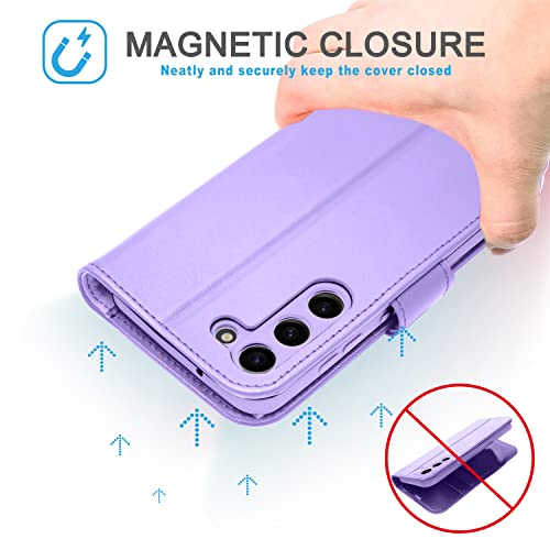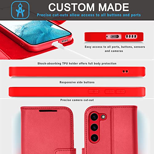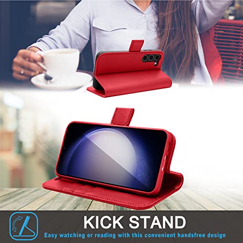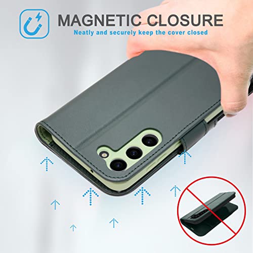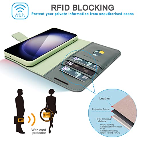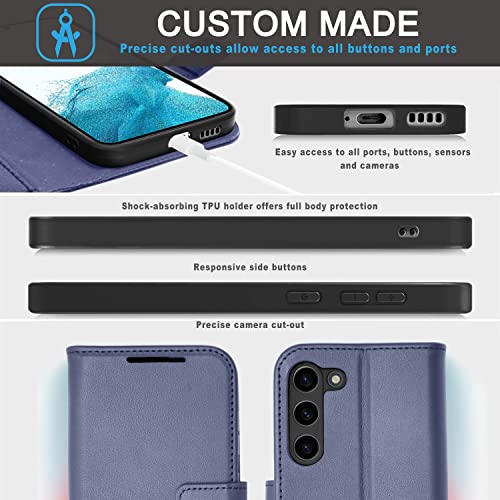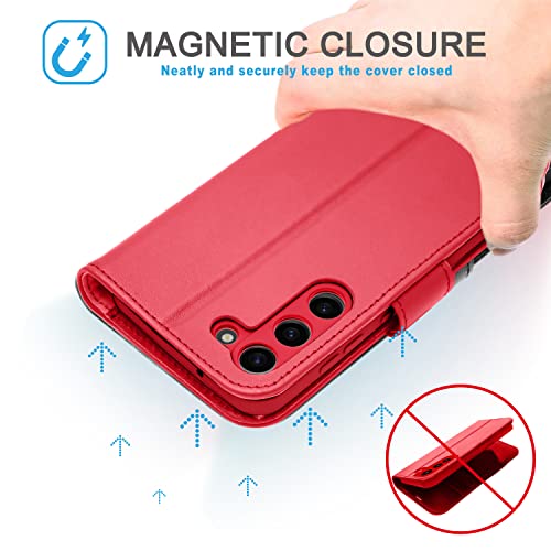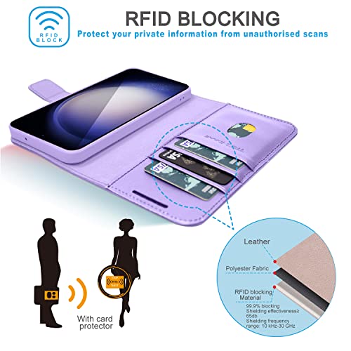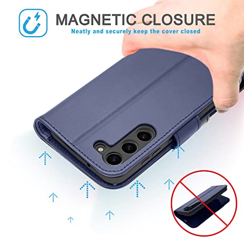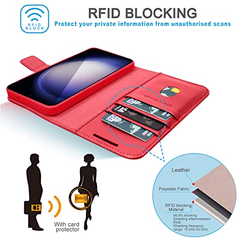 [Leather Wallet Case] Genuine Leather [RFID Blocking] Magnetic Flip Case with Card & Slots and Stand For Samsung Galaxy S23 Plus