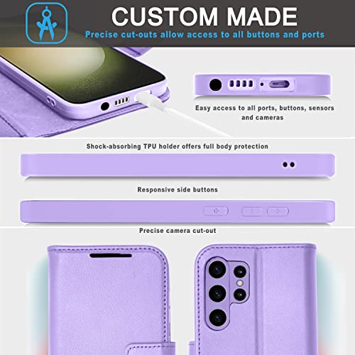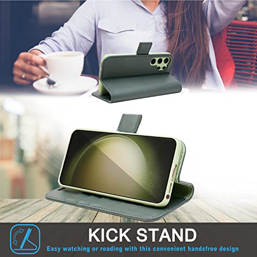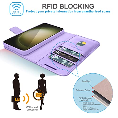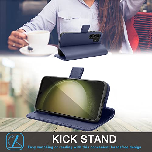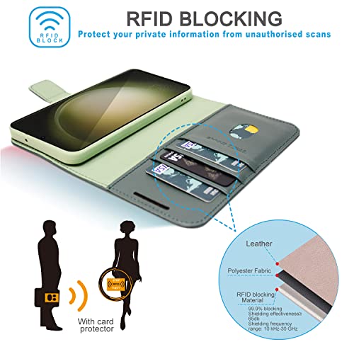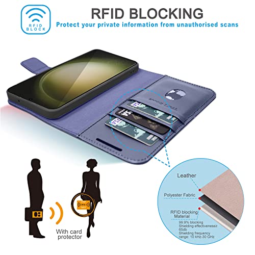 [Leather Wallet Case] Genuine Leather [RFID Blocking] Magnetic Flip Case with Card & Slots and Stand For Samsung Galaxy S23 Ultra