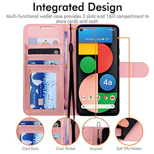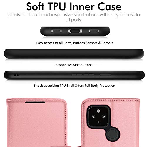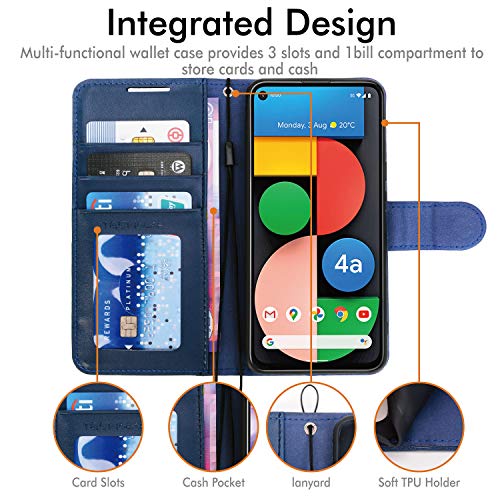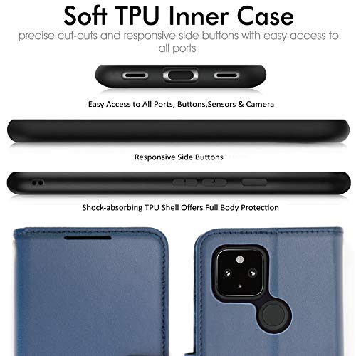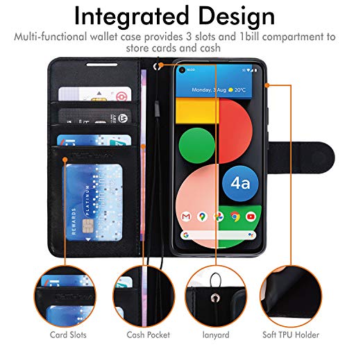 [Wallet Case] Protective Cover with Cash & Card Holder, Stand and Wrist Strap For Google Pixel 4a 5G