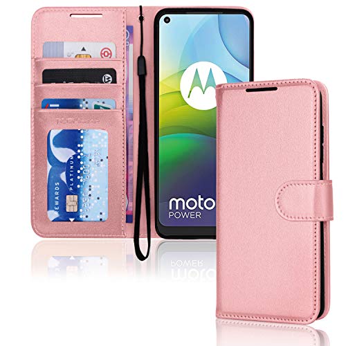 [Wallet Case] Protective Cover with Cash & Card Holder, Stand and Wrist Strap For Motorola Moto G9 Power