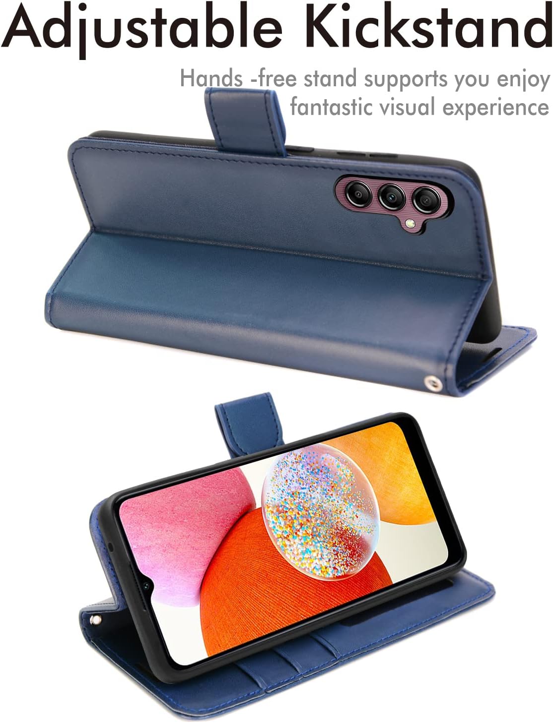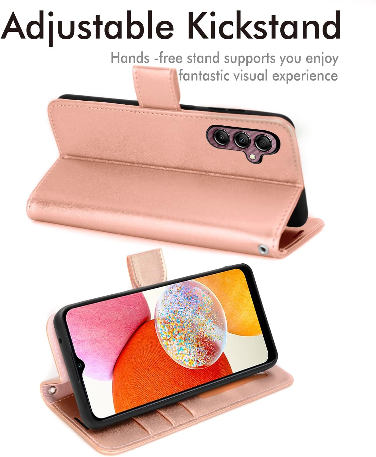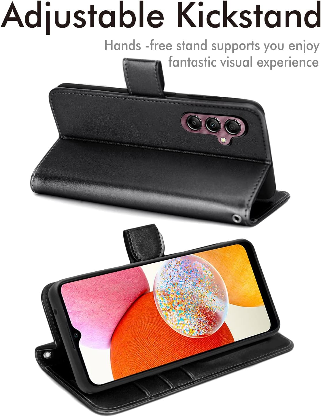 [Wallet Case] Protective Cover with Cash & Card Holder, Stand and Wrist Strap For Samsung A14 5G