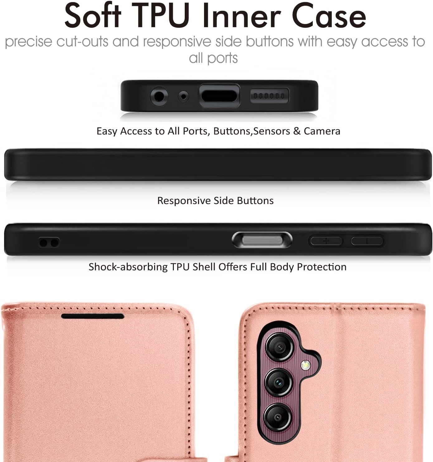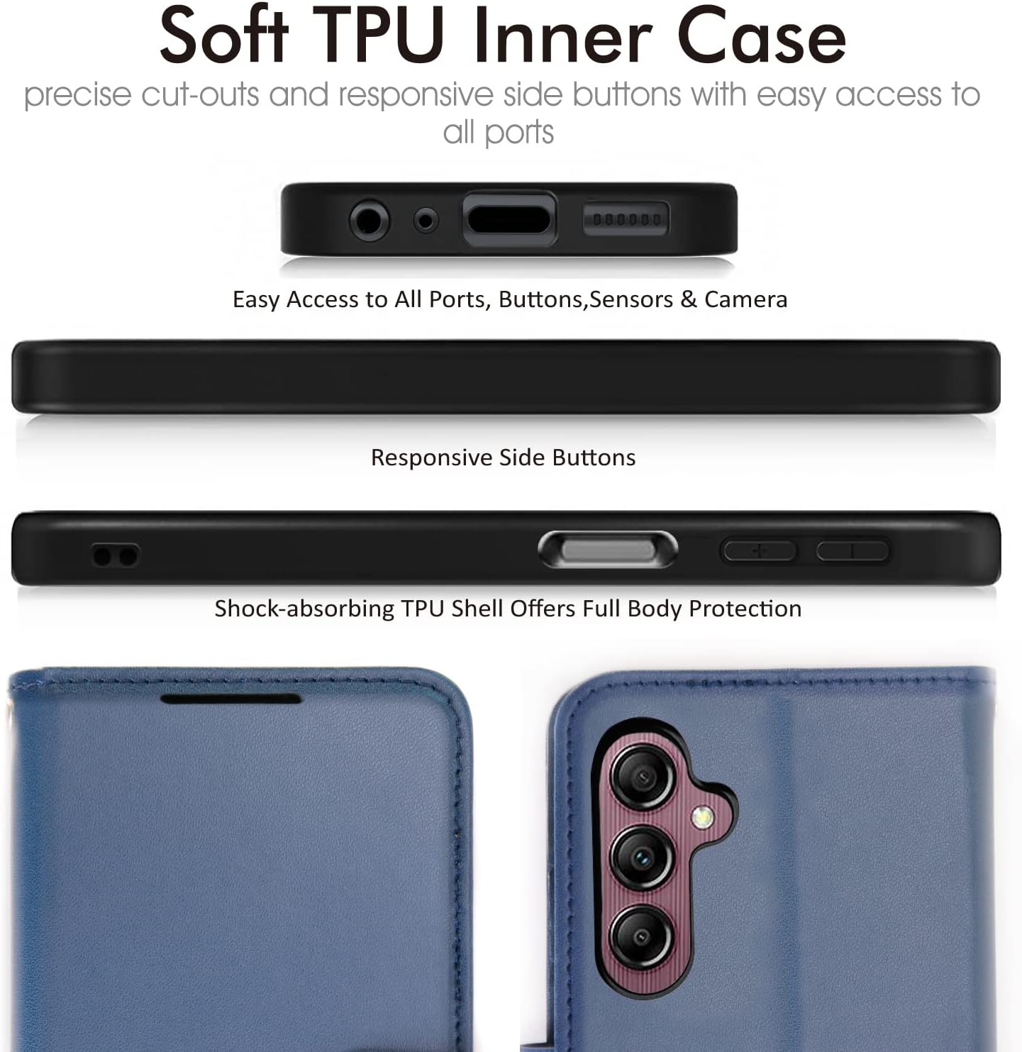 [Flip Case] Premium PU leather as reinforced frame and soft TPU phone case effectively protects your phone from accidental scratching, shocking, and bumping.