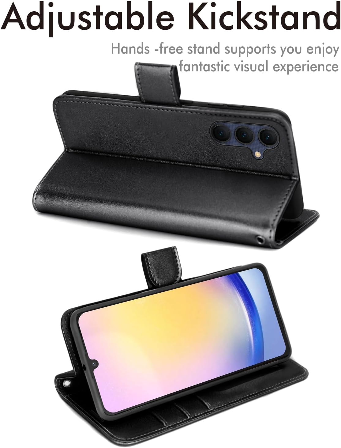 [Leather Wallet Case] Protective Cover with Cash & Card Holder, Stand and Wrist Strap For Samsung Galaxy A25 5G
