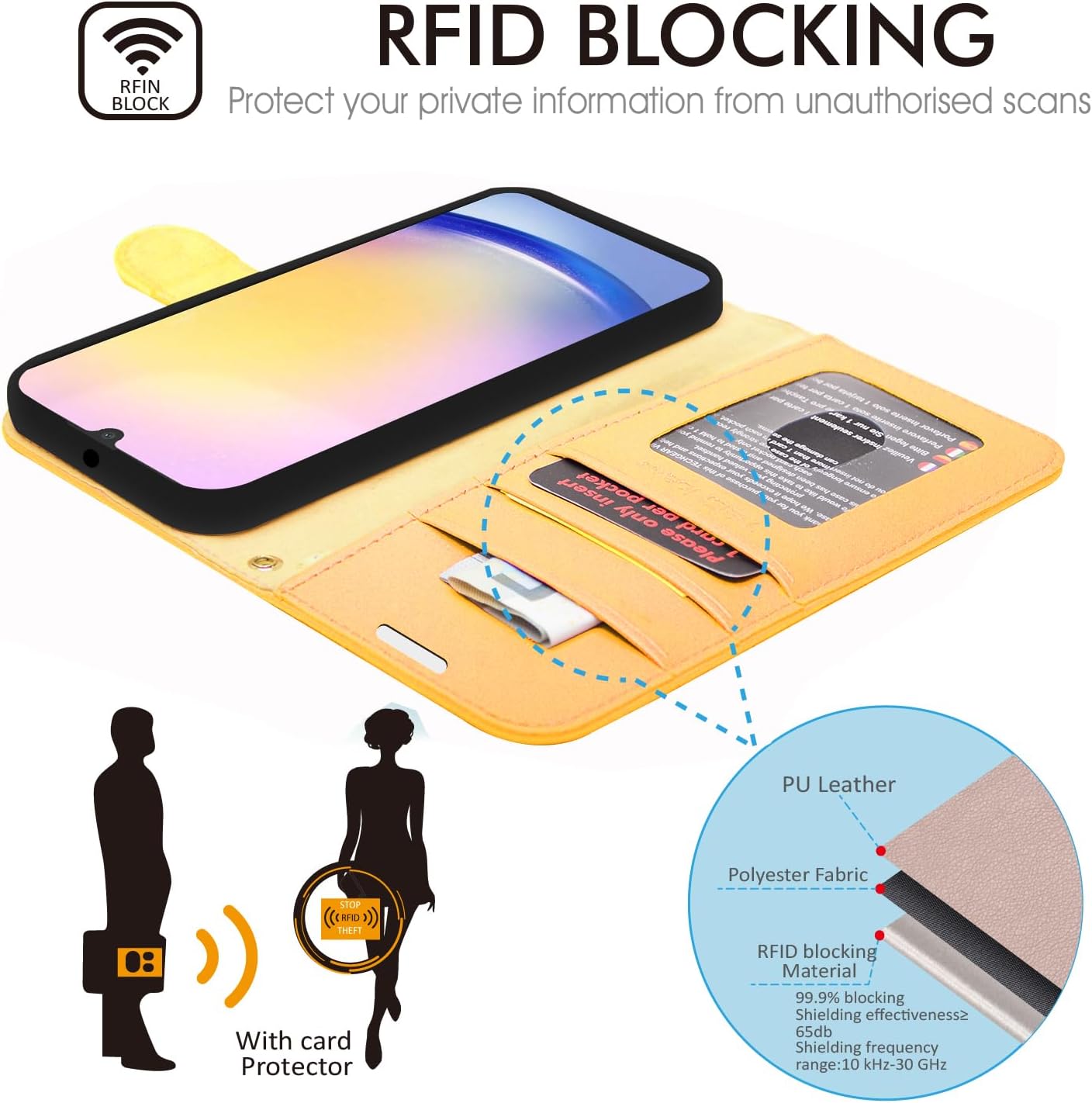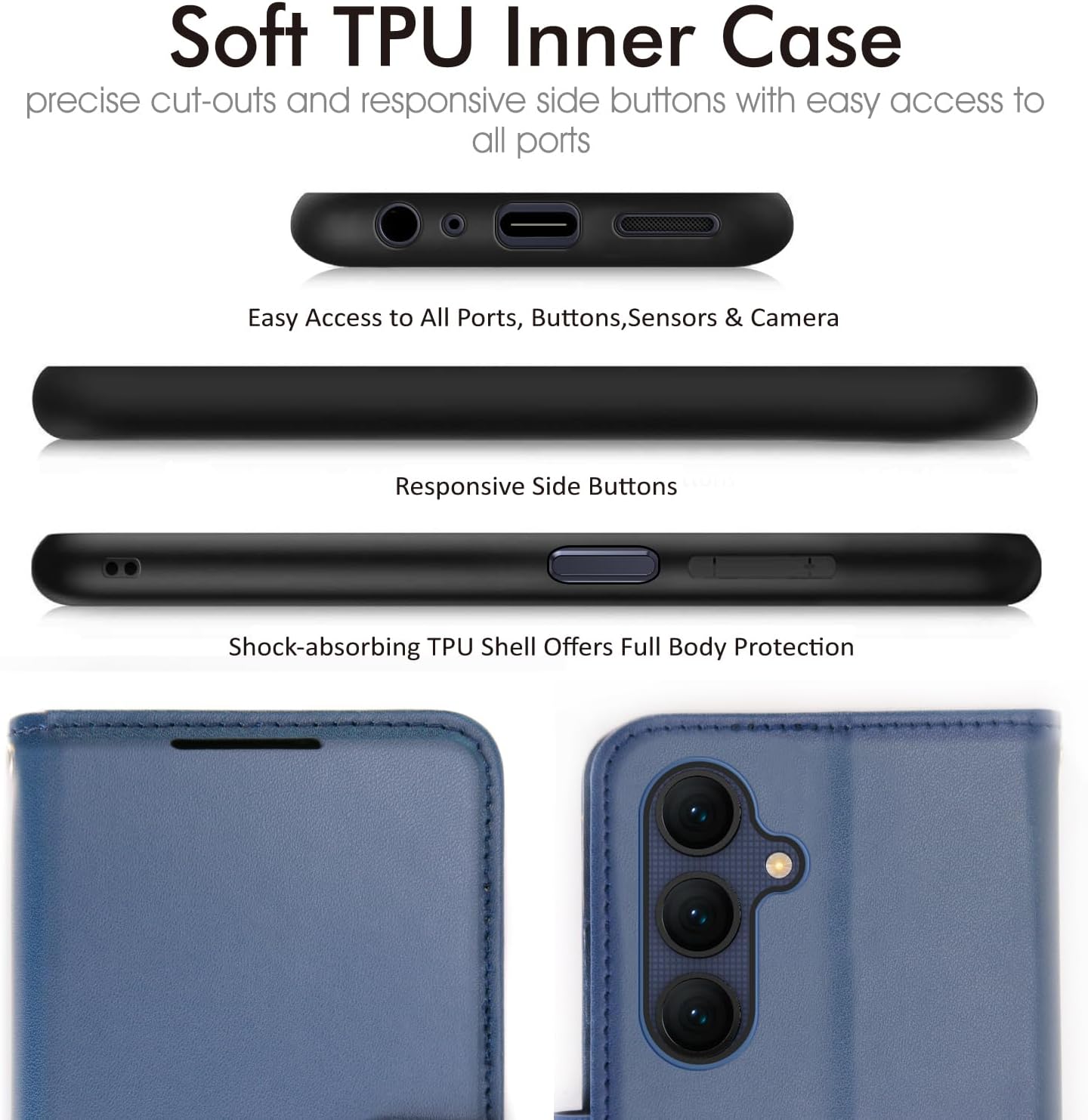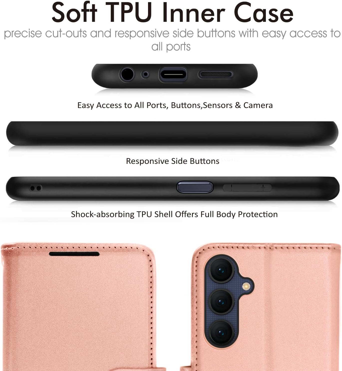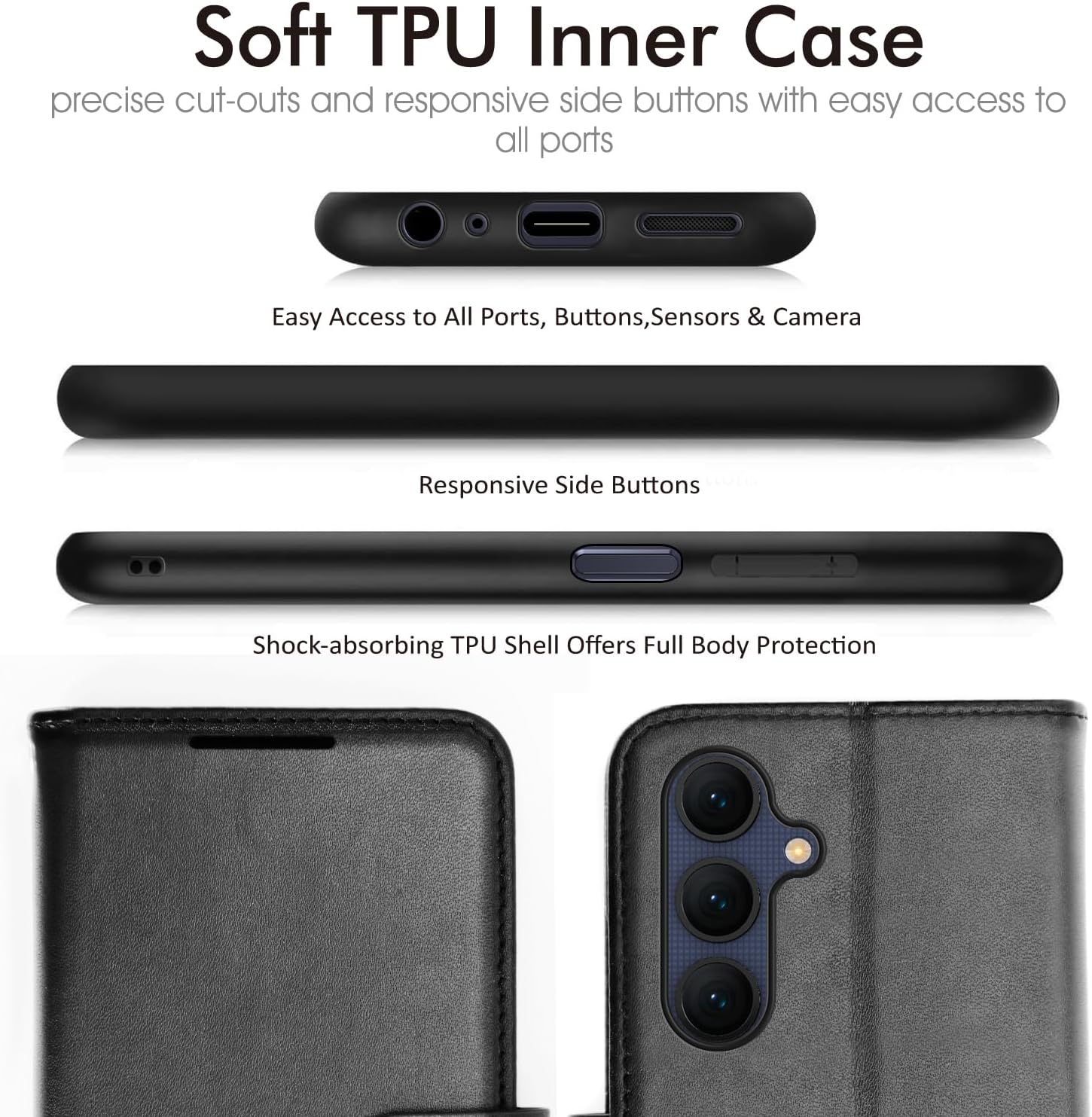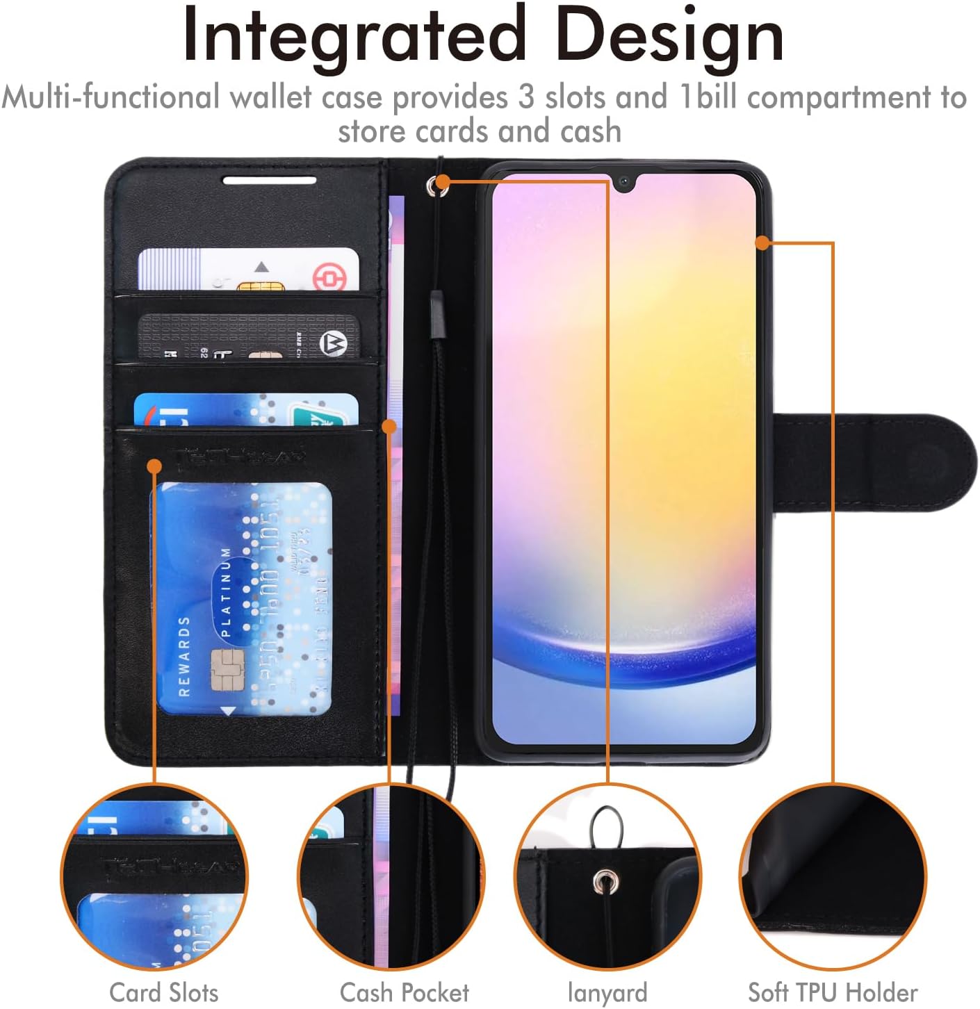 - [Galaxy A25 Flip Book Case] Premium PU leather as reinforced frame and soft TPU phone case effectively protects your phone from accidental scratching, shocking, and bumping.