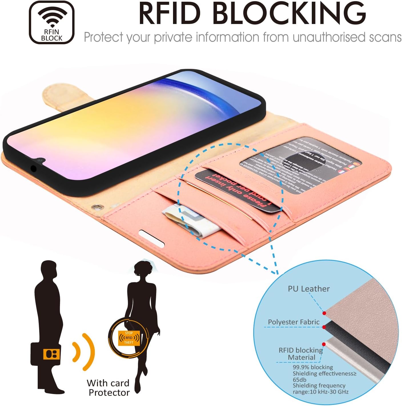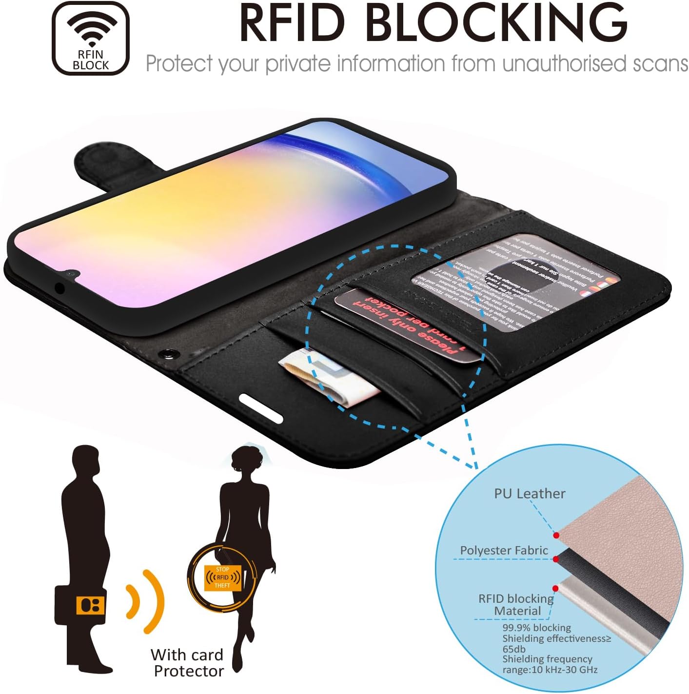 - [Samsung A25 5G RFID Blocking Case]: Intergrated RFID Shielding Technology. Concerned about the protection of your card information? Worry no more! Our TECHGEAR wallet case is equipped with RFID shielding technology designed to protect your card information from identit theft & scanning/reading with an innovative blocking material.