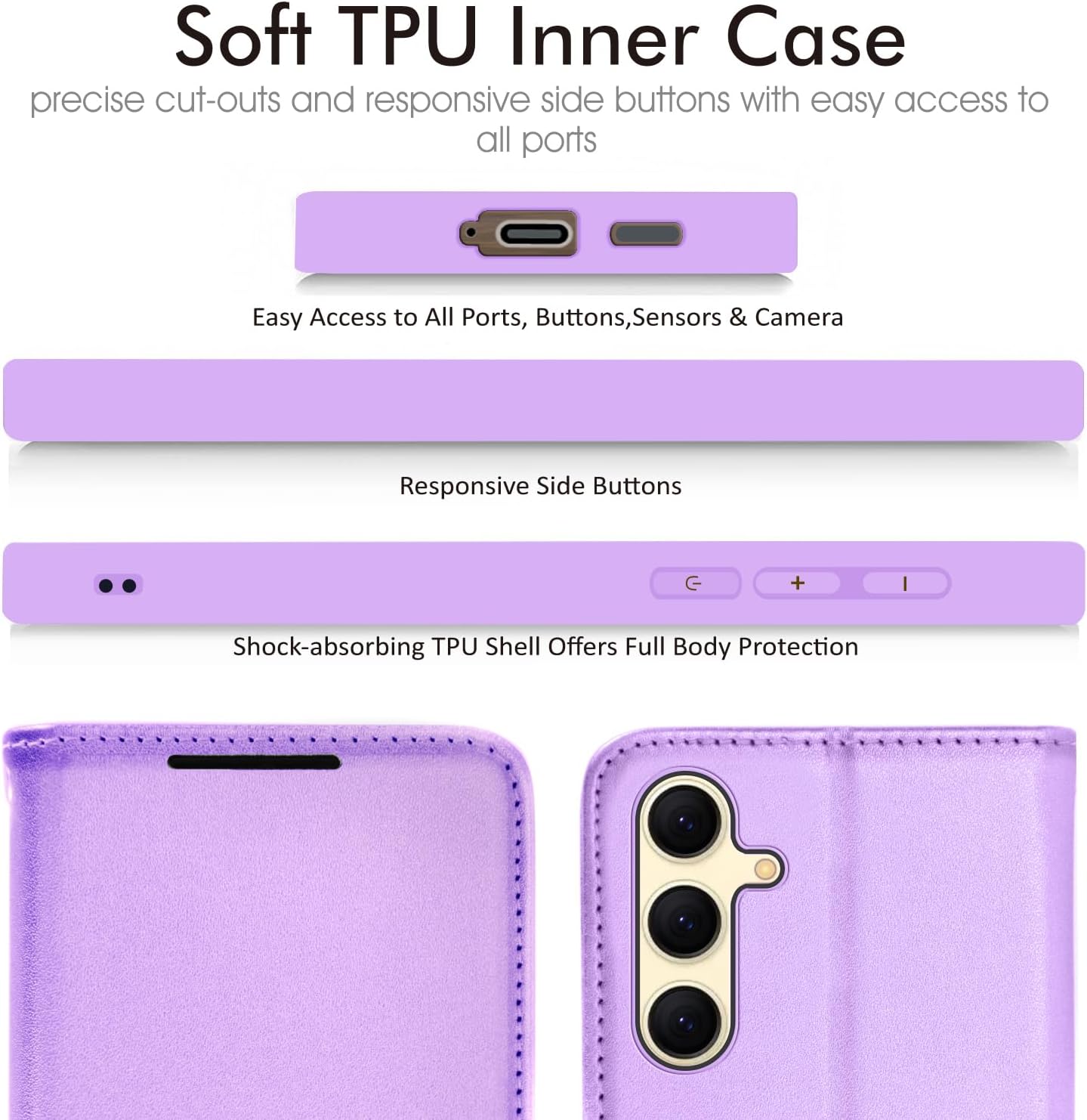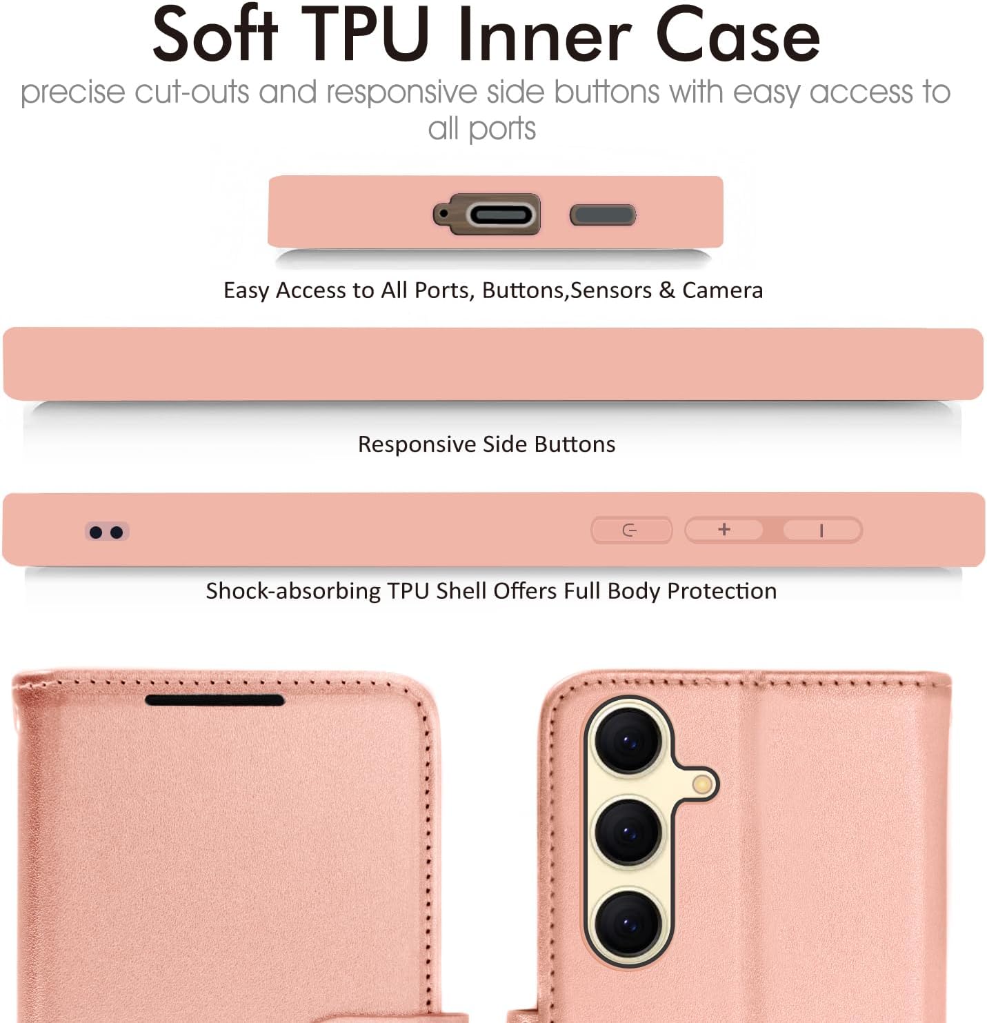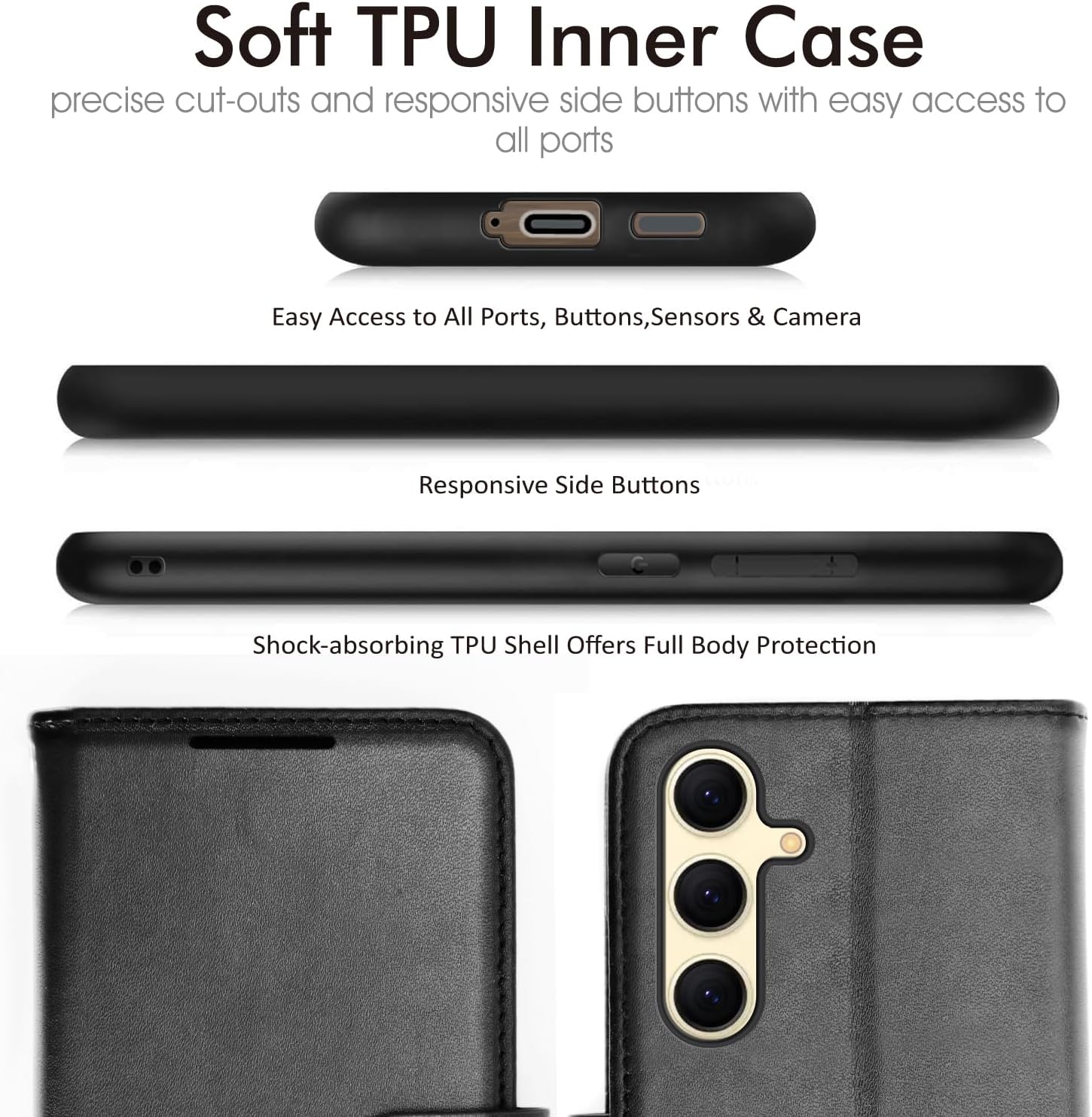 - [Galaxy S24 Flip Case] Premium PU leather as reinforced frame and soft TPU phone case effectively protects your phone from accidental scratching, shocking, and bumping.