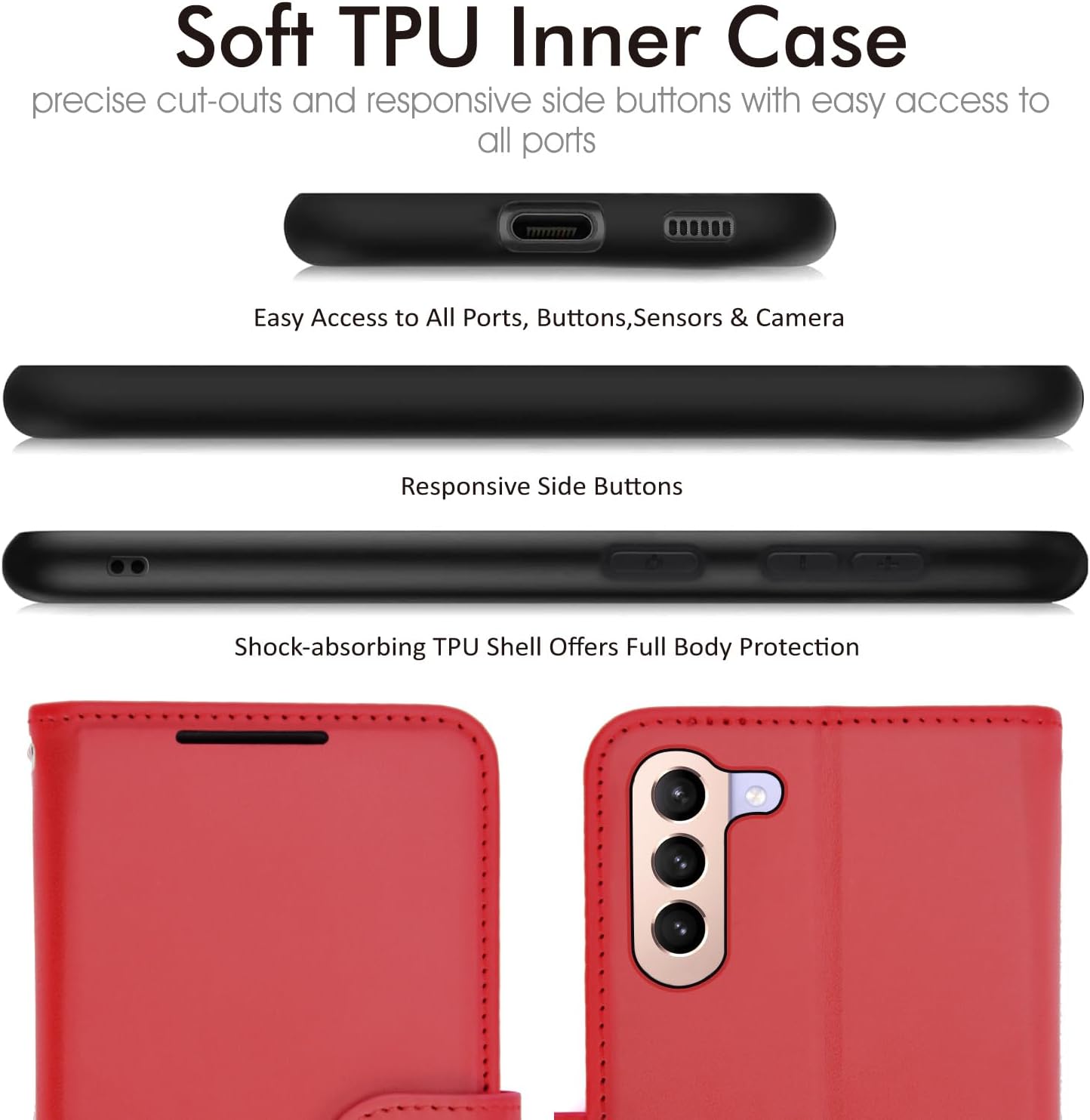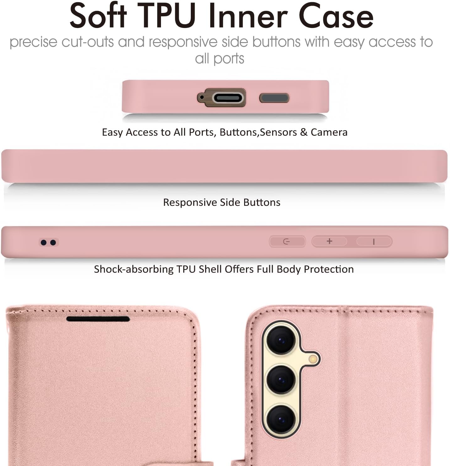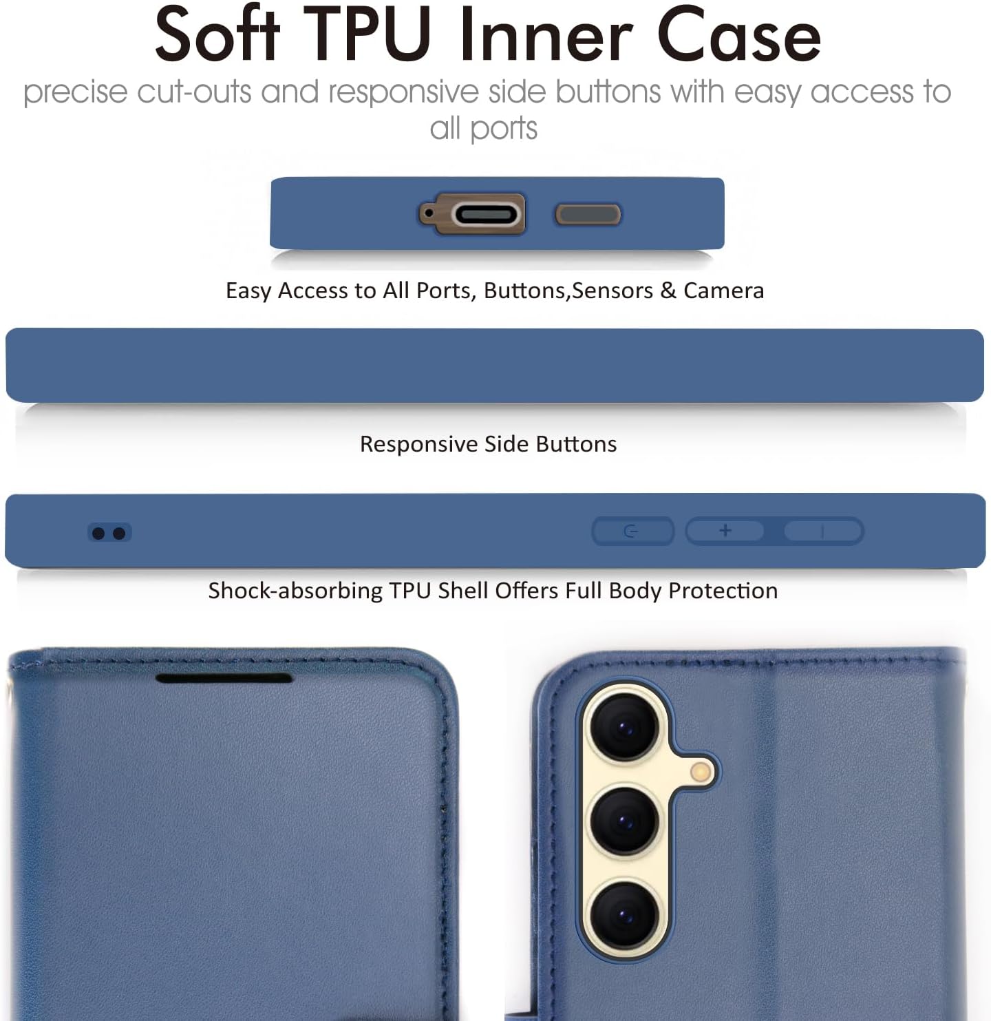 - [Galaxy S24 Flip Case] Premium PU leather as reinforced frame and soft TPU phone case effectively protects your phone from accidental scratching, shocking, and bumping.