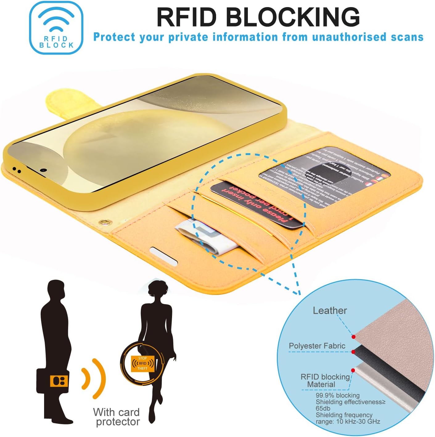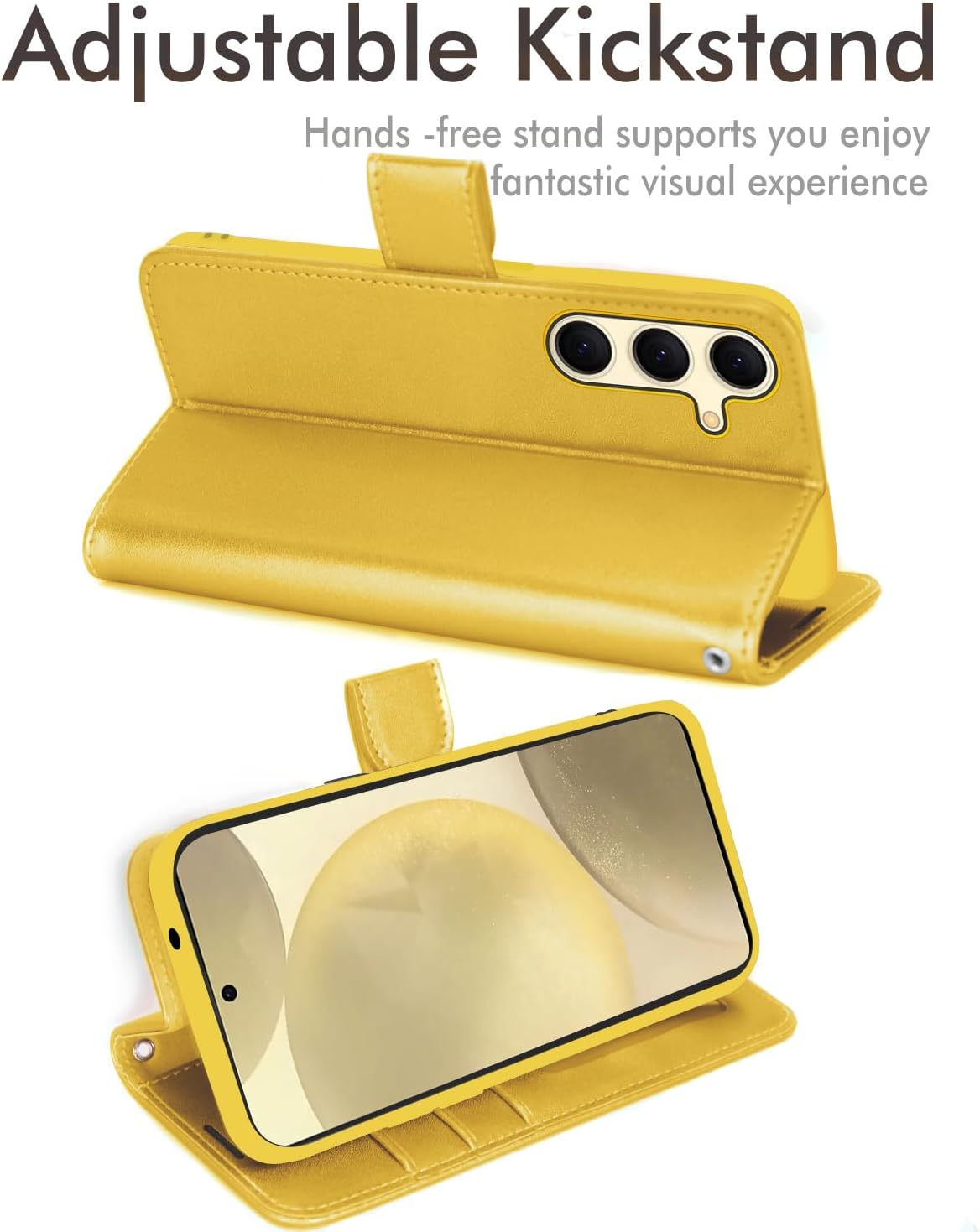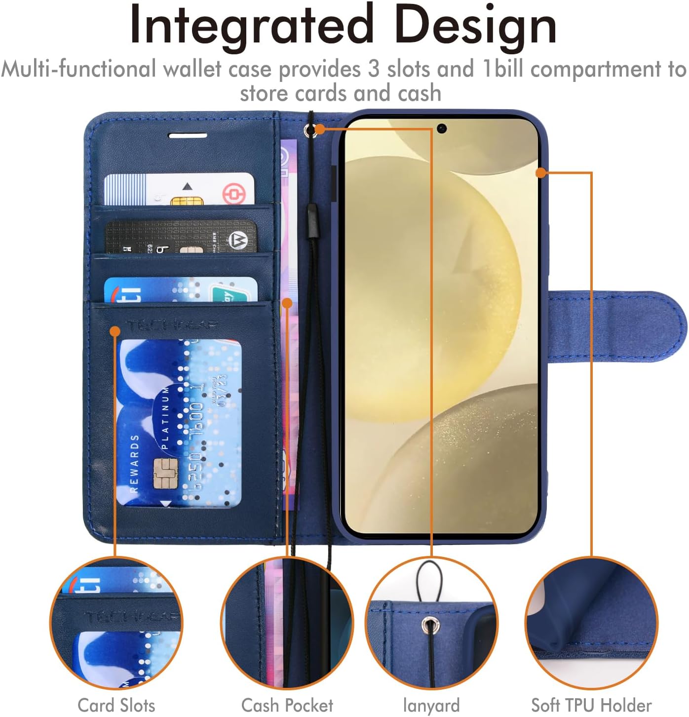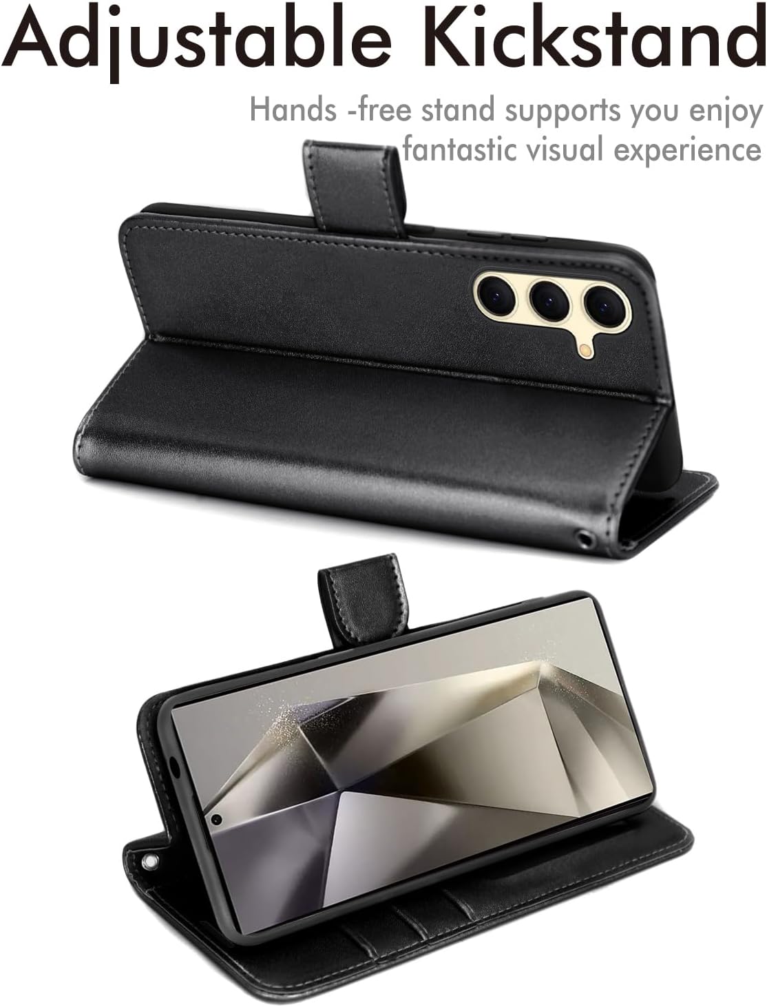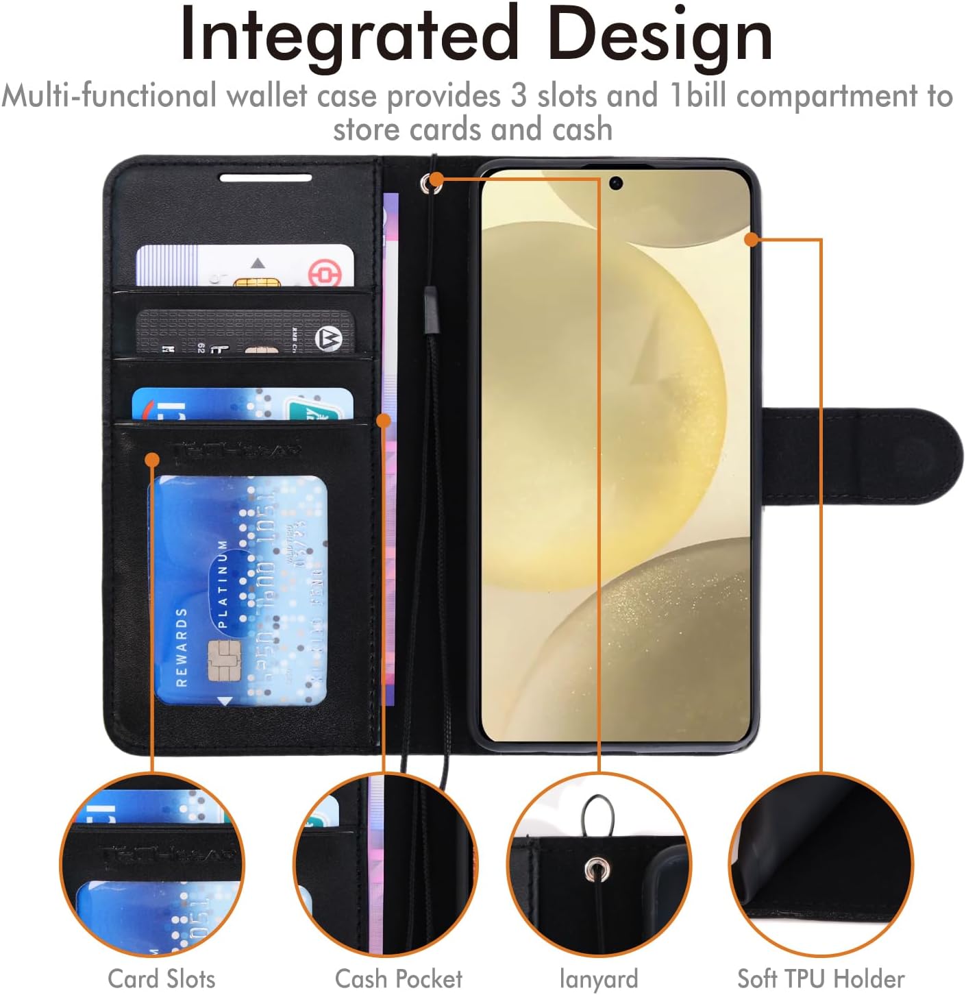 [Leather Wallet Case] Protective Cover with Cash & Card Holder, Stand and Wrist Strap For Samsung Galaxy S24 5G