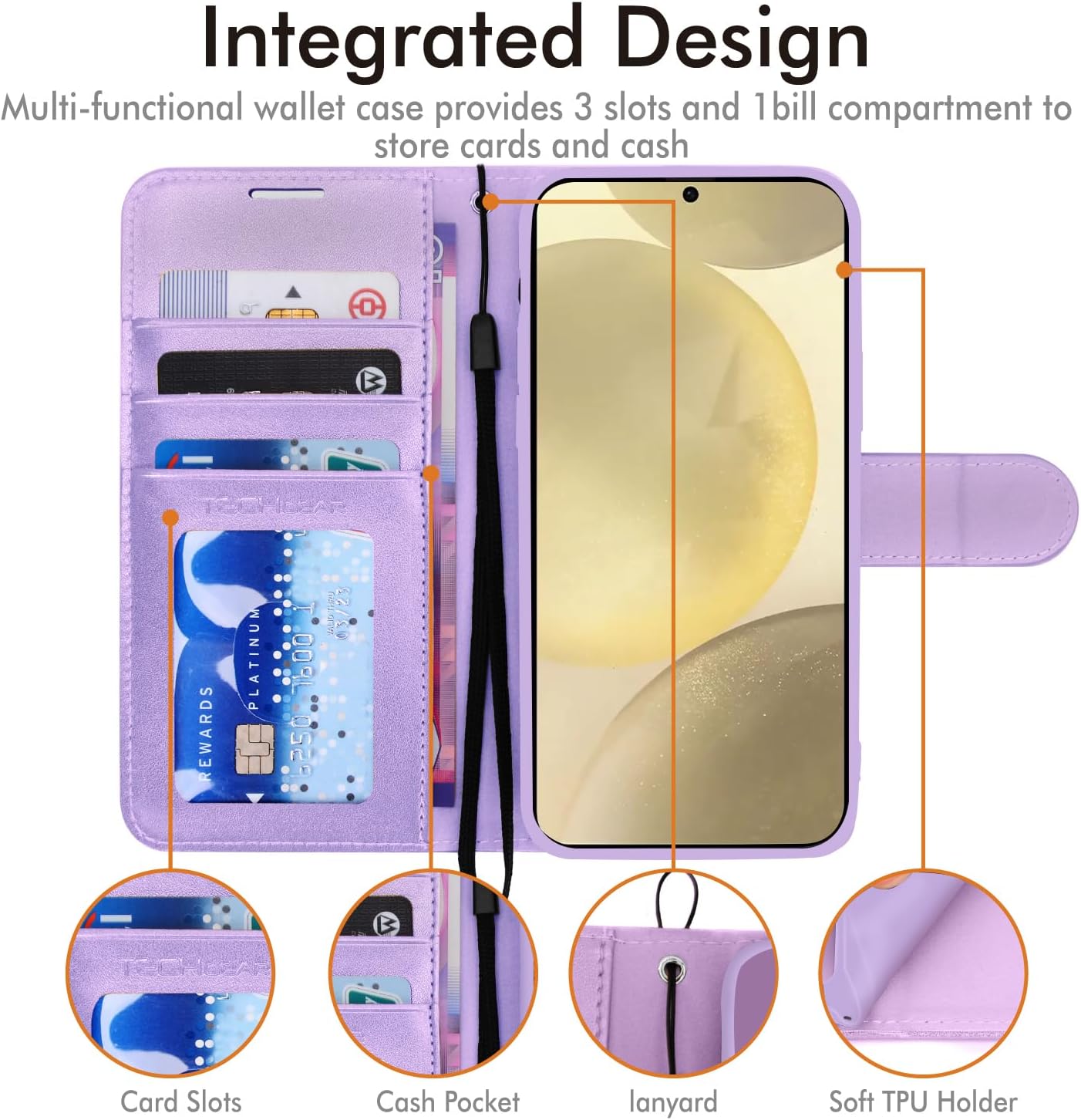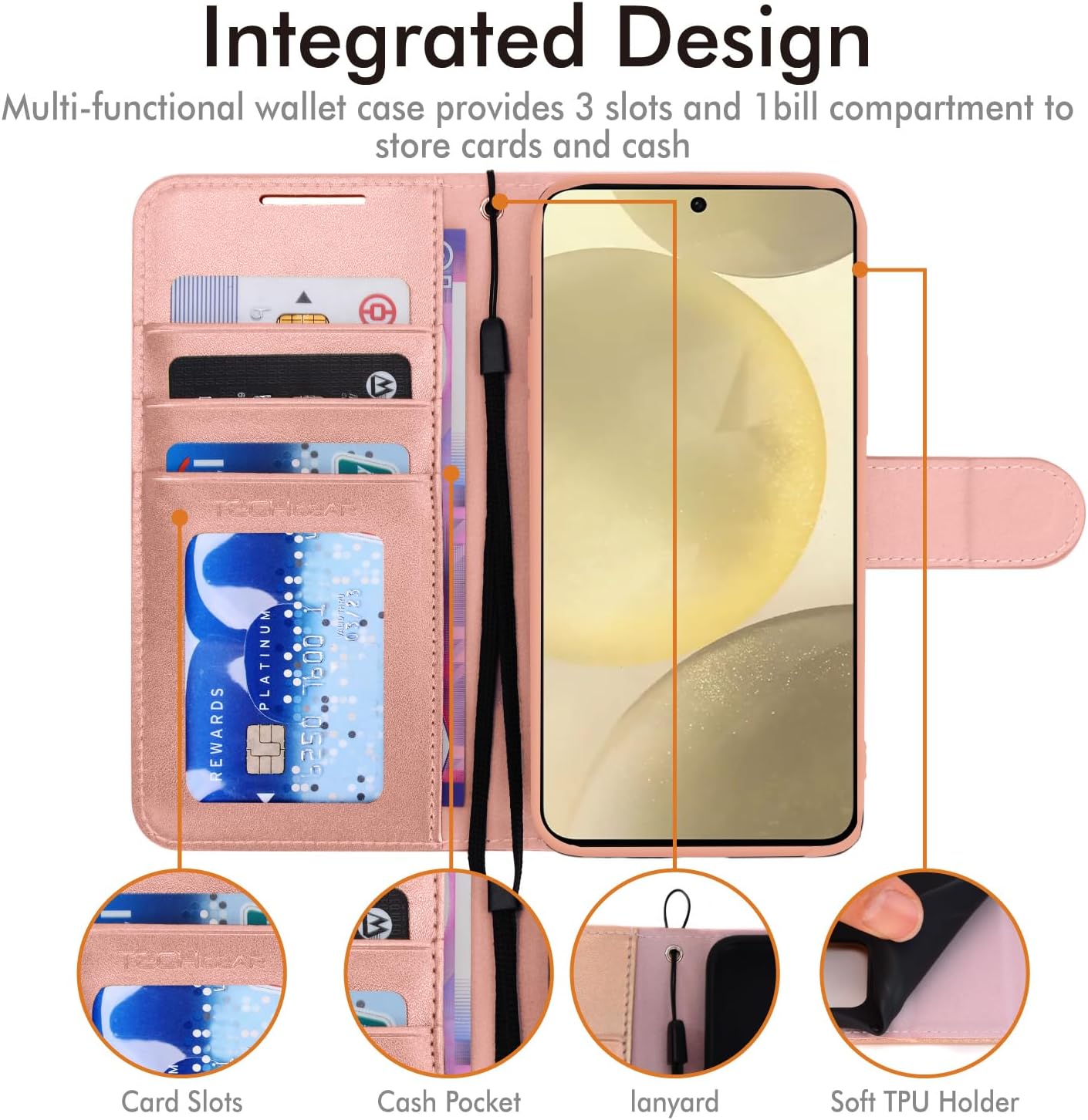 - [S24 Wallet Case] Release your hands from cards and cash. 3 card holders and one money pouch help keeping your daily essentials well organized.