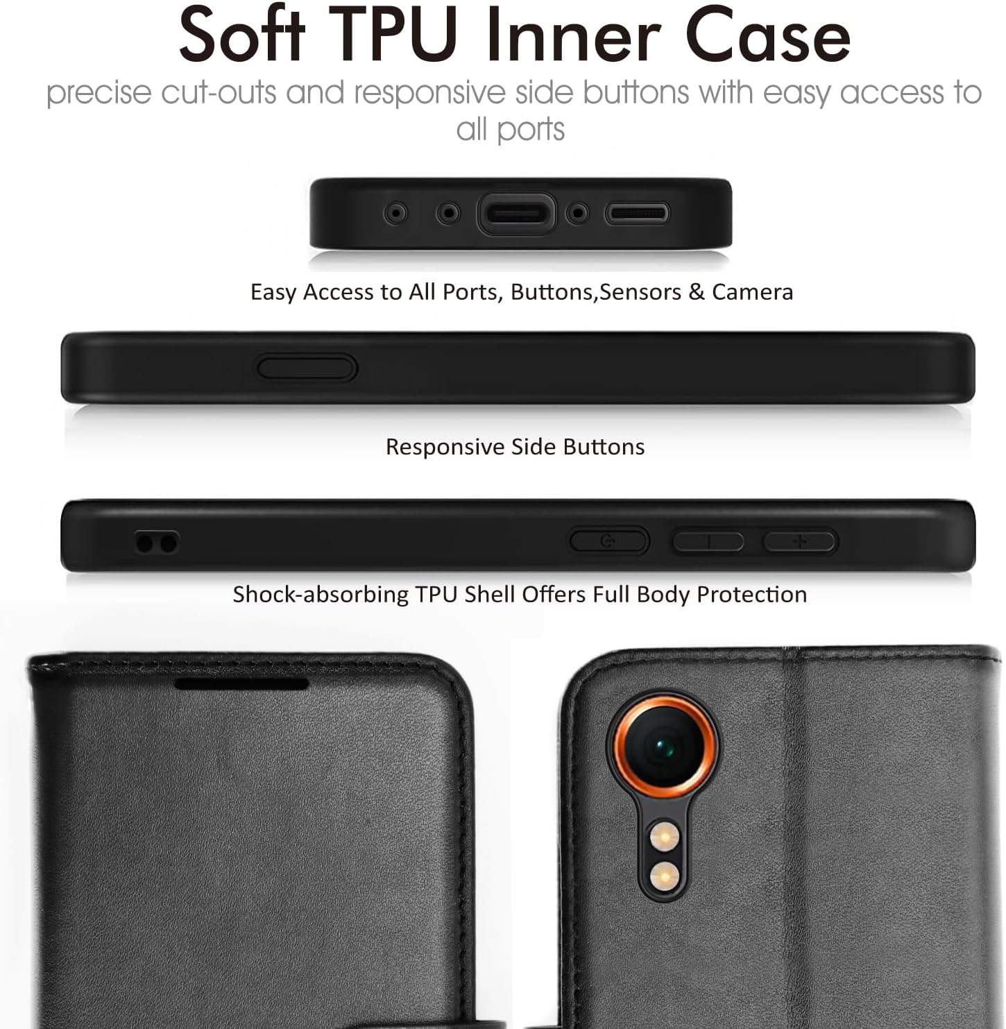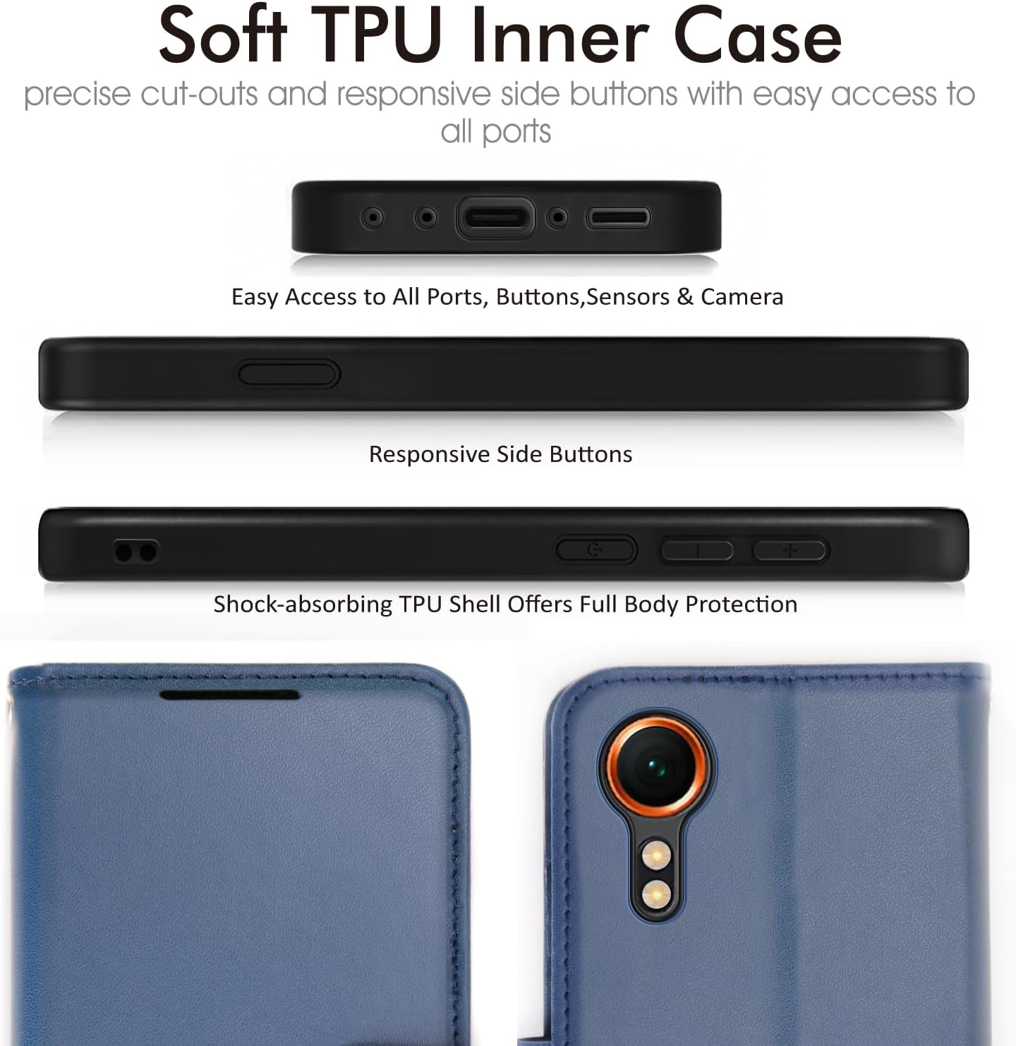 • [XCover 7 Flip Book Case] Premium PU leather as reinforced frame and soft TPU phone case effectively protects your phone from accidental scratching, shocking, and bumping.