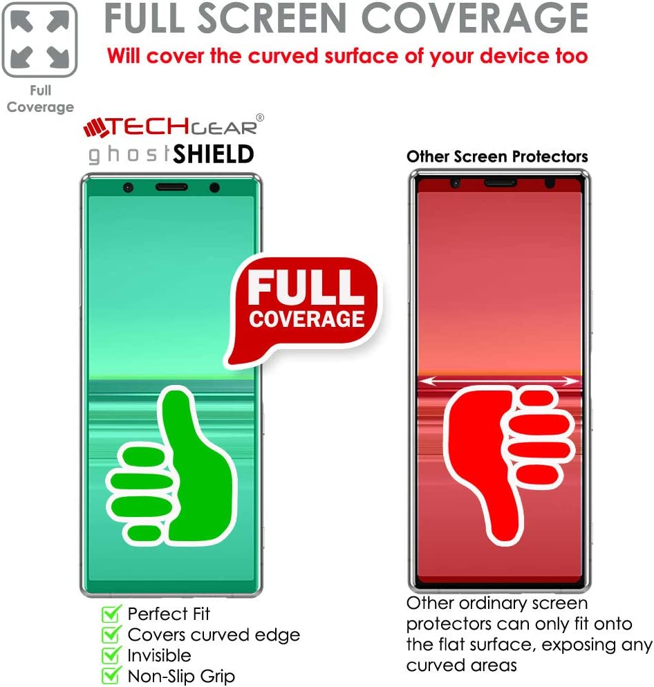 [Pack of 3] TECHGEAR Screen Protectors fit Sony Xperia 5 [ghostSHIELD Edition] Reinforced TPU film Screen Protector with FULL Screen Coverage inc
