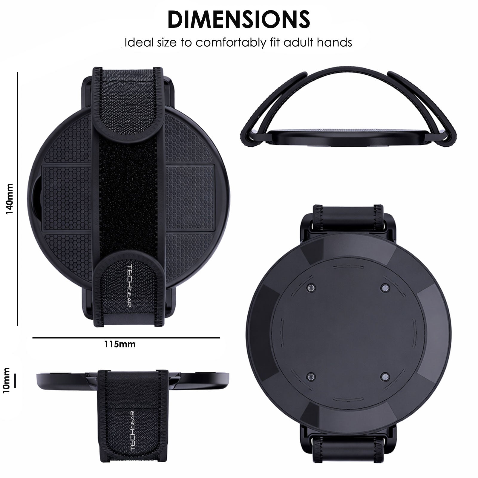 Large 11.5 cm diameter adhesive disc delivers strong, reliable attachment when applied to smooth, flat surfaces. Designed for direct application to tablet backs or compatible cases.