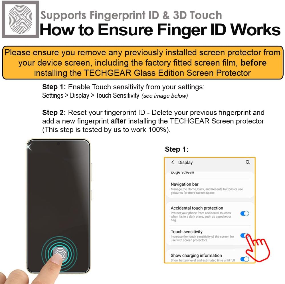 - FINGERPRINT ID COMPATIBLE: This TECHGEAR glass screen protector has been specially formulated to fit the screen and allows you to use your Finger ID with 100% consistency. There are no unsightly holes, or circle cut-outs either. Please check our video for proof