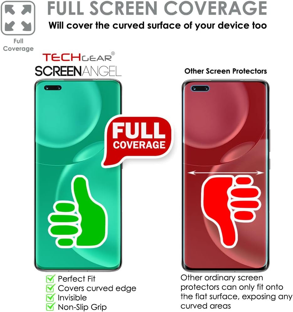 - [Case-Friendly Design] This TECHGEAR Screen Angel screen protector is designed to be compatible with most cases. Extra space is left around the borders for your case to wrap around the edges of your mobile without interfering with the film.