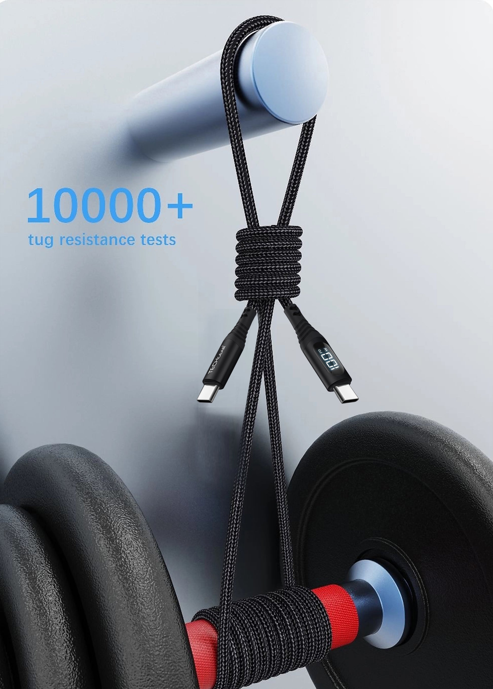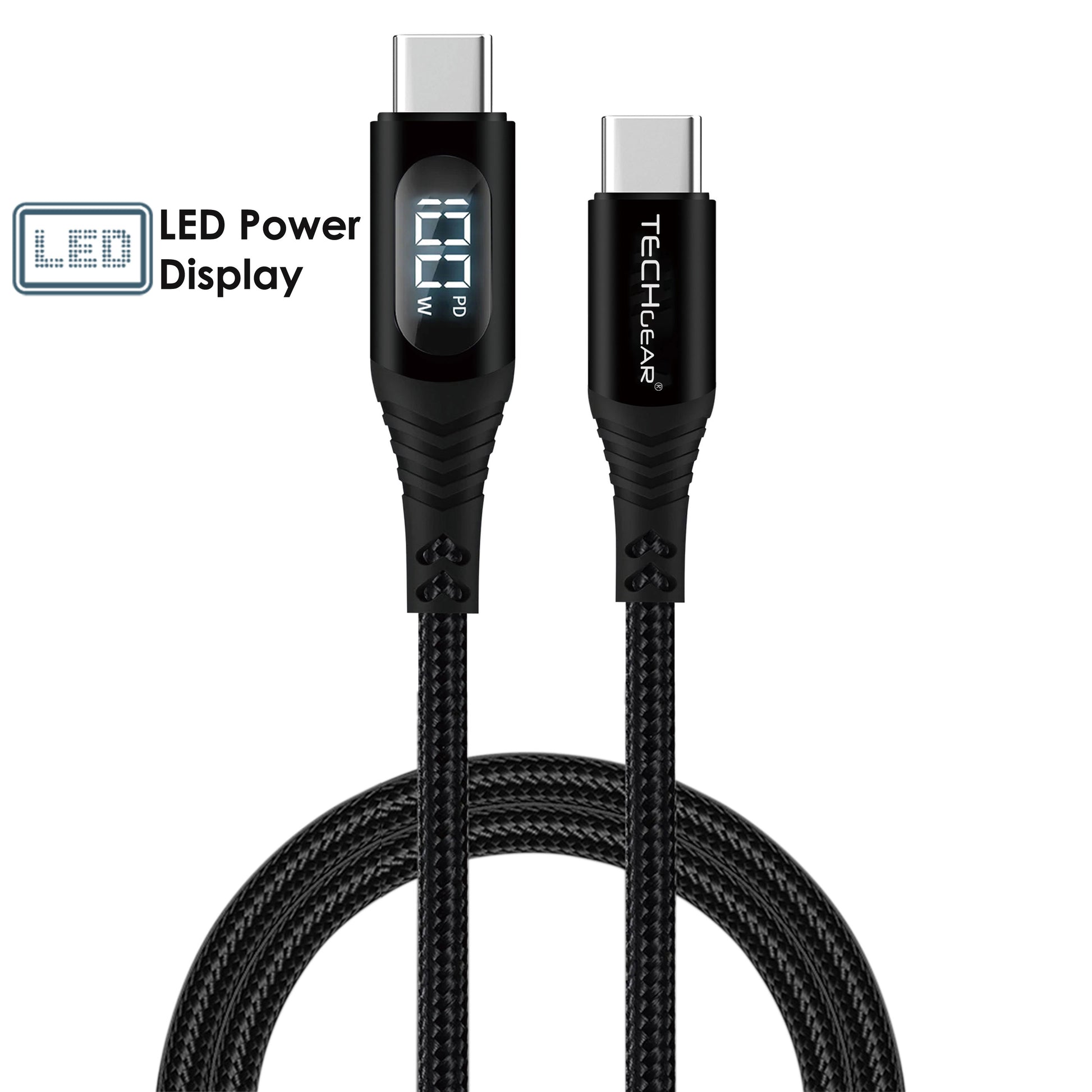 TECHGEAR 100W USB-C to USB-C Fast Charging Cable with LED Power Display – PD3.0 / QC4.0, Nylon Braided, E-Marker Chip, 30cm | 1m | 2m | 3m