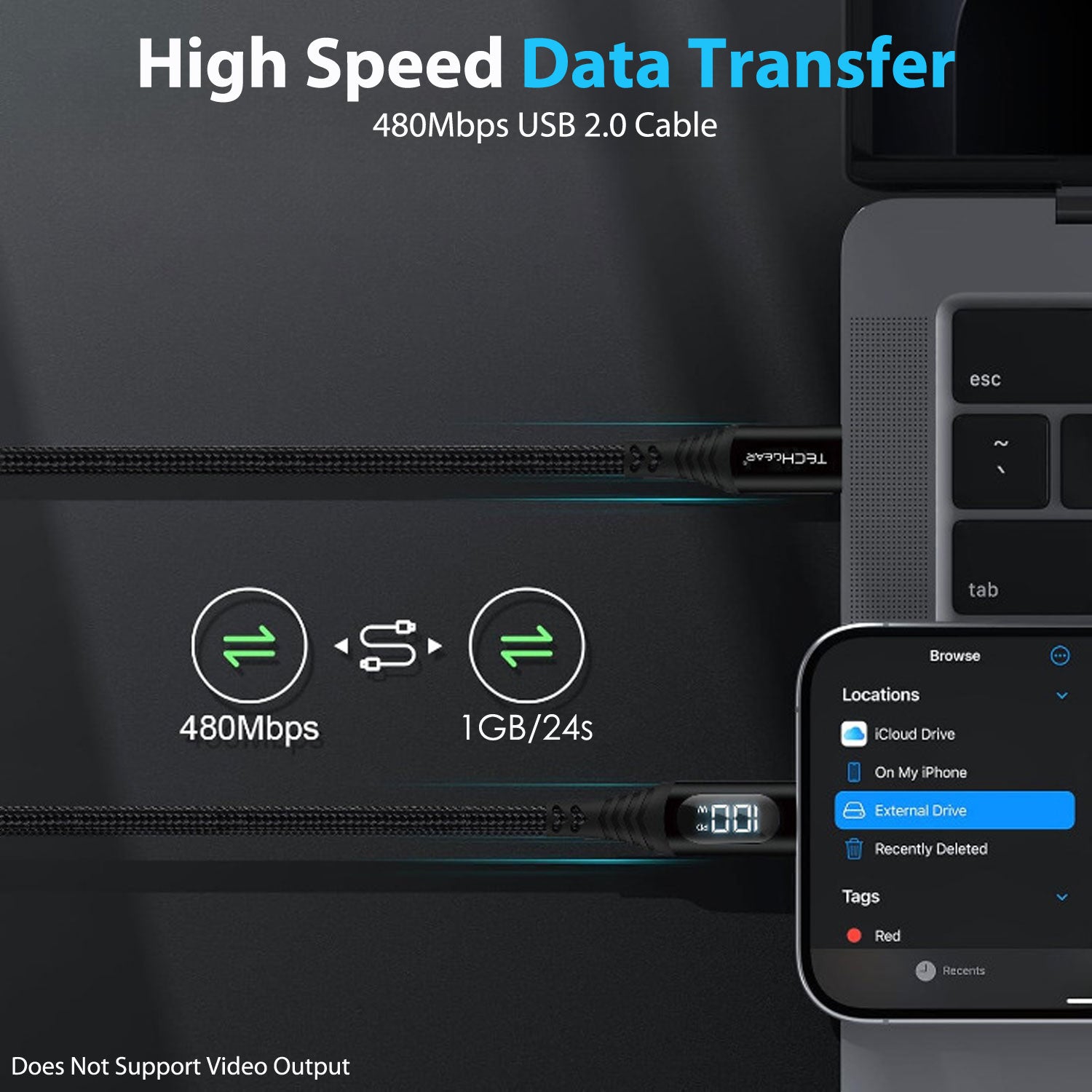 The TECHGEAR 100W USB-C to USB-C LED Display Cable delivers both speed and clarity — showing live power output while charging your devices at up to 100 W. Built with PD 3.0 and QC 4.0 technology, it can refuel a MacBook Pro 16" to 42 % in just 30 minutes (using a compatible charger). Its E-Marker chip ensures smart voltage control and device safety, preventing over-current or overheating.