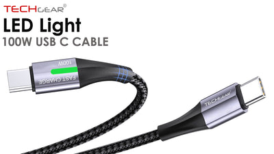 The TECHGEAR 100 W USB-C to USB-C LED Light Cable offers performance and clarity in one design. The soft LED indicator lights up only when charging, giving a subtle visual cue without glare when idle.