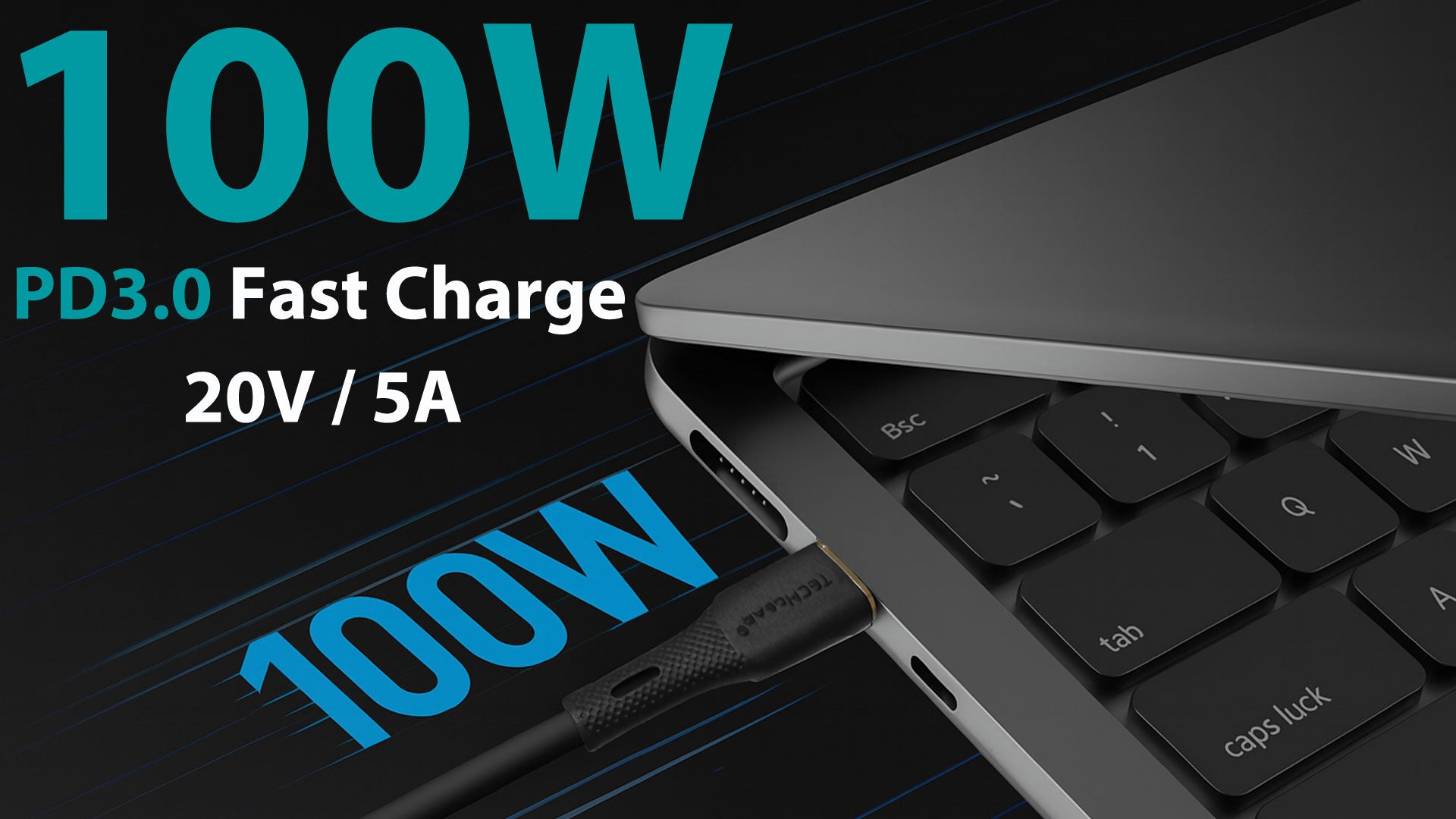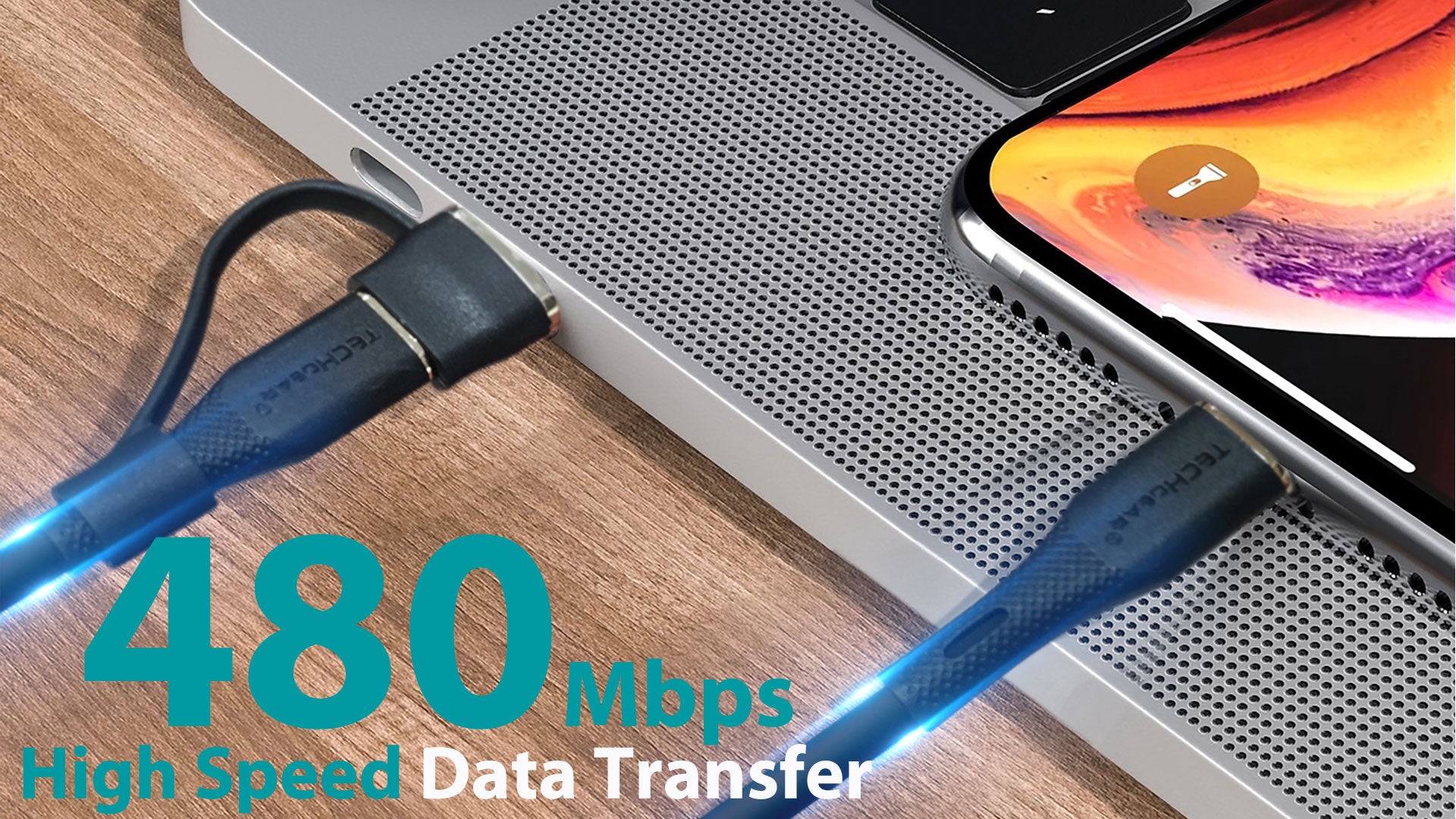 Delivering PD 3.0 / QC 4.0 fast charging up to 100 W and 480 Mbps data sync, it powers and transfers between laptops, tablets, and phones with ease. The integrated E-Marker chip ensures voltage control and device safety.