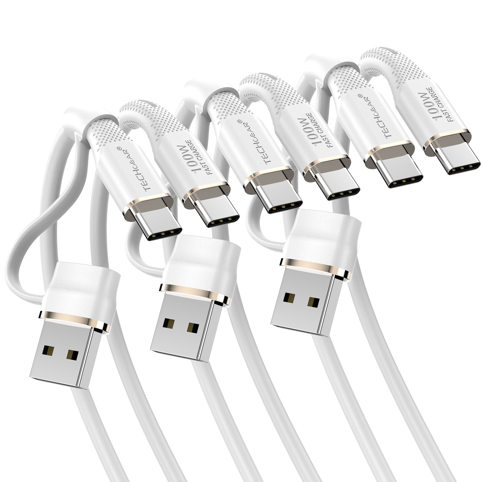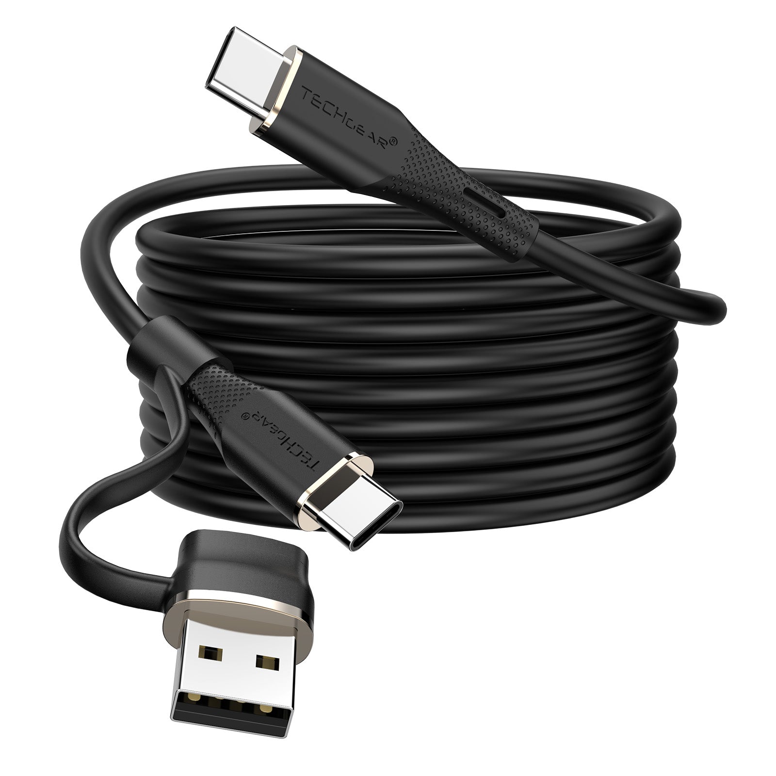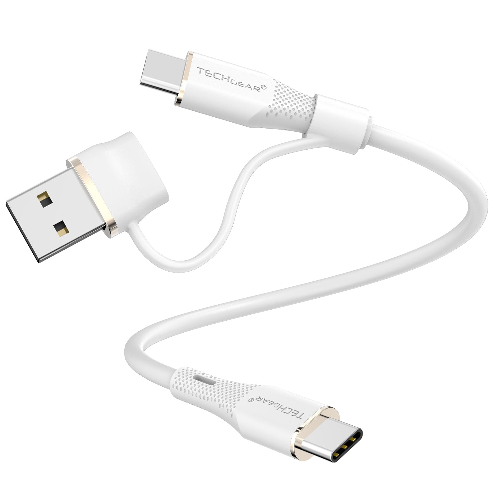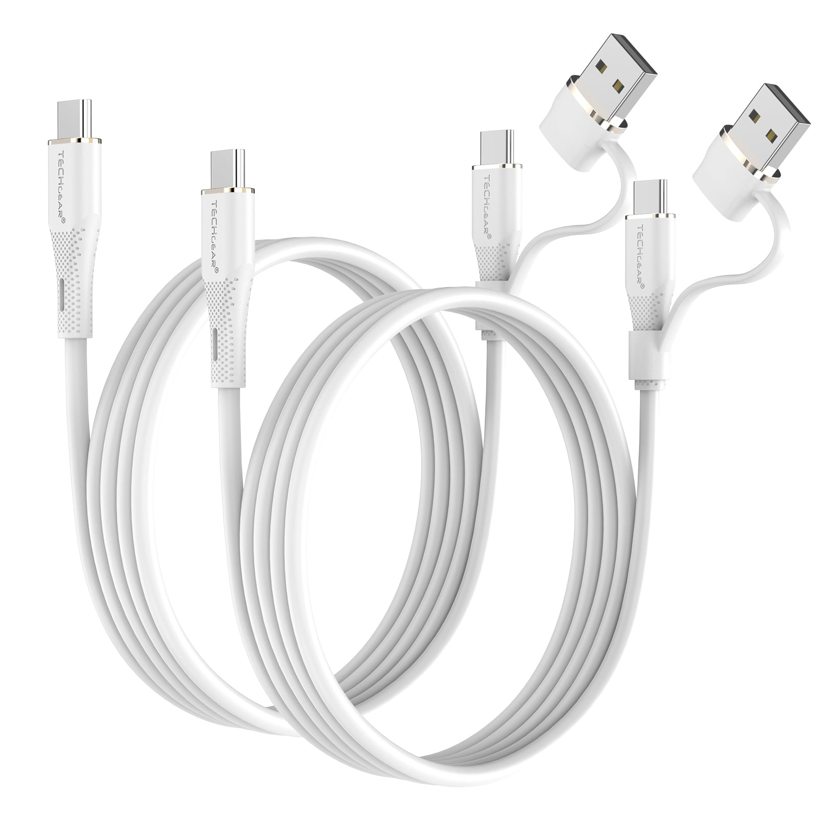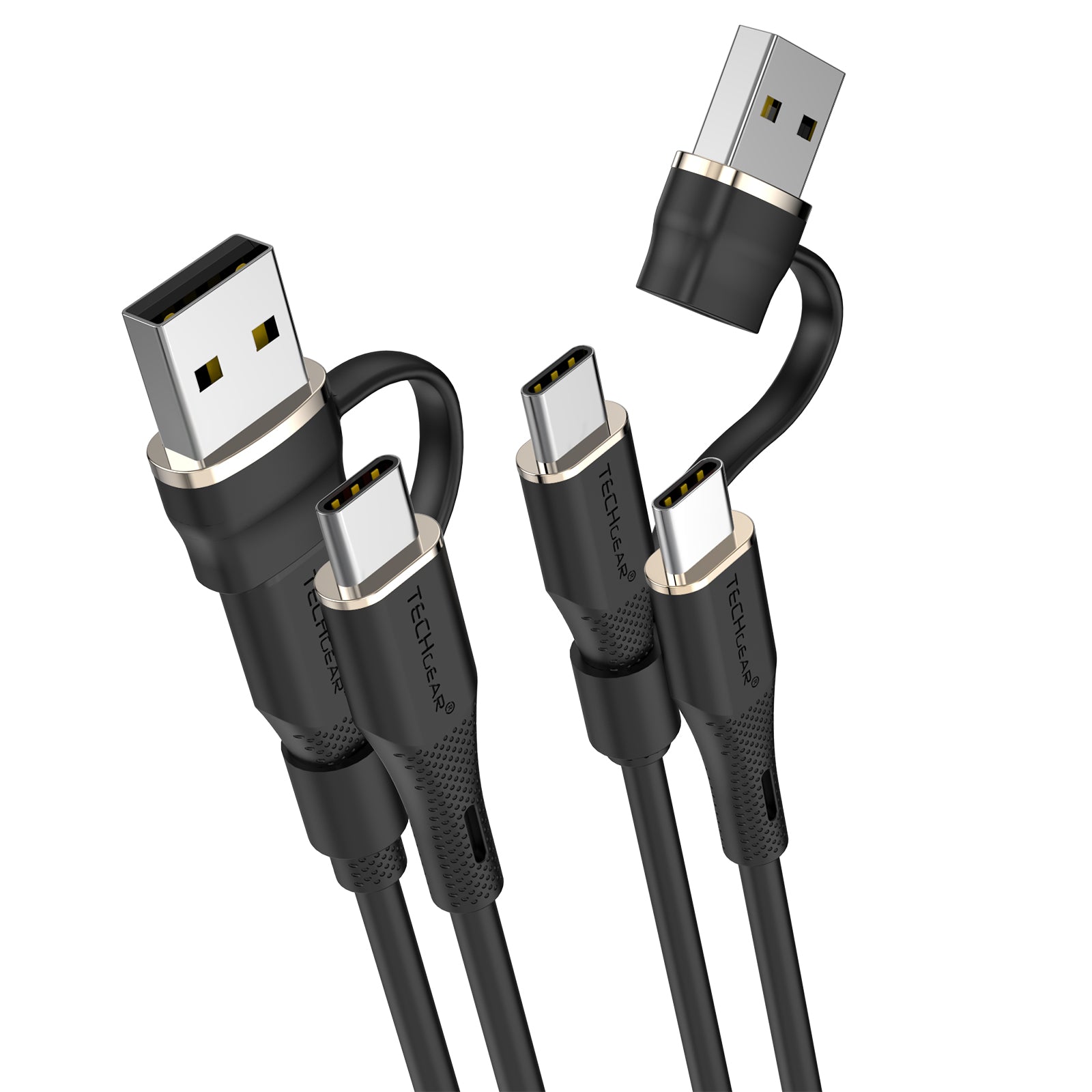 TECHGEAR 2-in-1 100 W USB-A/C to USB-C Soft Silicone Fast Charging Cable – Tangle-Free, PD 3.0/QC 4.0, E-Marker – Black | Red | White – 30 cm | 1 m | 2 m | 3 m | 2 Pack | 3 Pack
