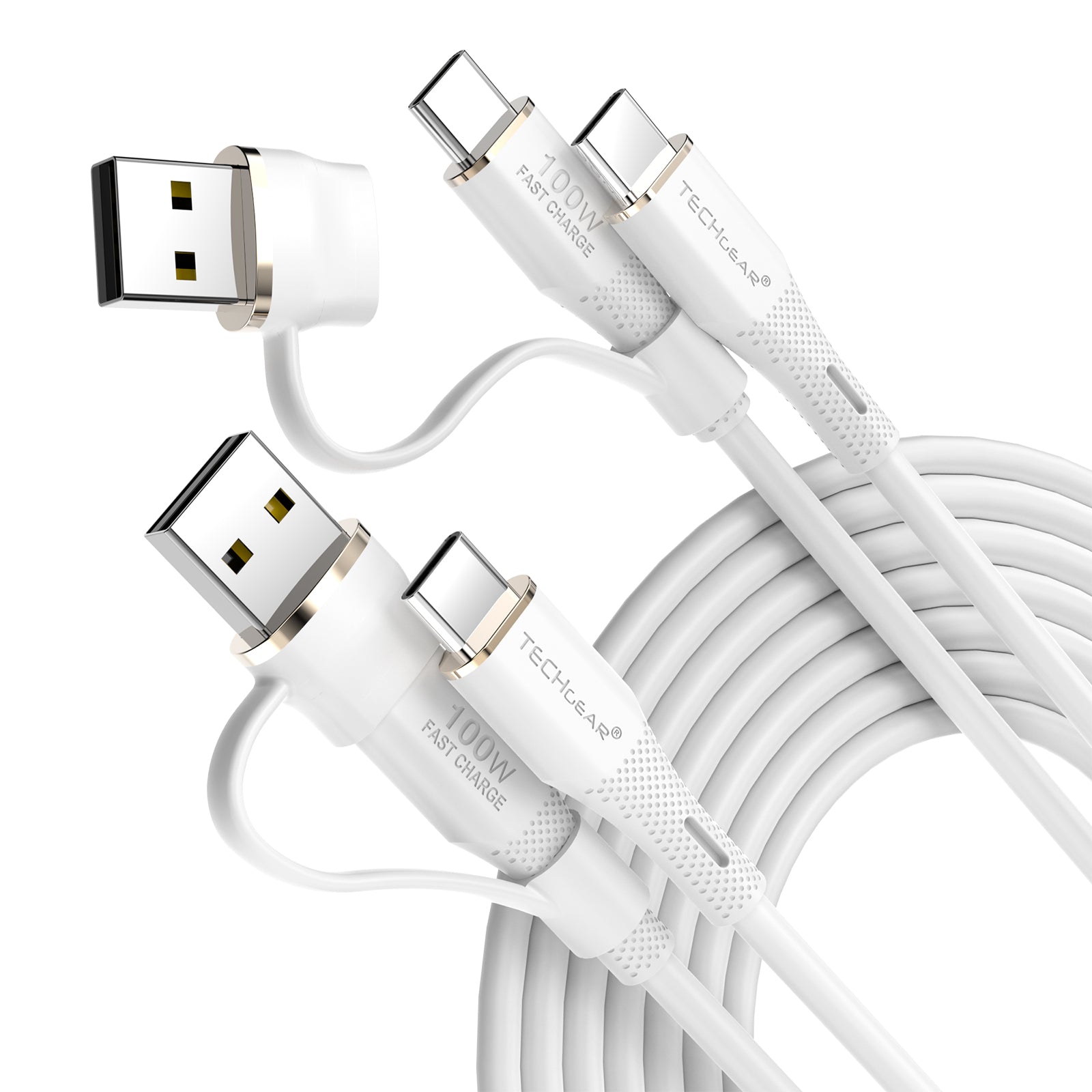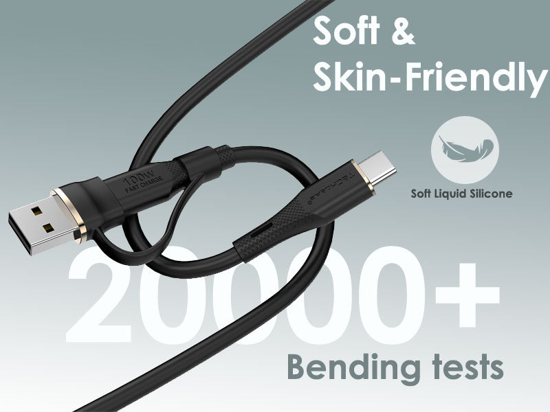 The TECHGEAR 2-in-1 100 W USB-A/C to USB-C Soft Silicone Cable combines premium feel, flexibility, and high-speed power in one sleek design. Its liquid-silicone exterior offers a velvety-soft texture that remains tangle-free even when wrapped, packed, or twisted—perfect for travel, work, or home.