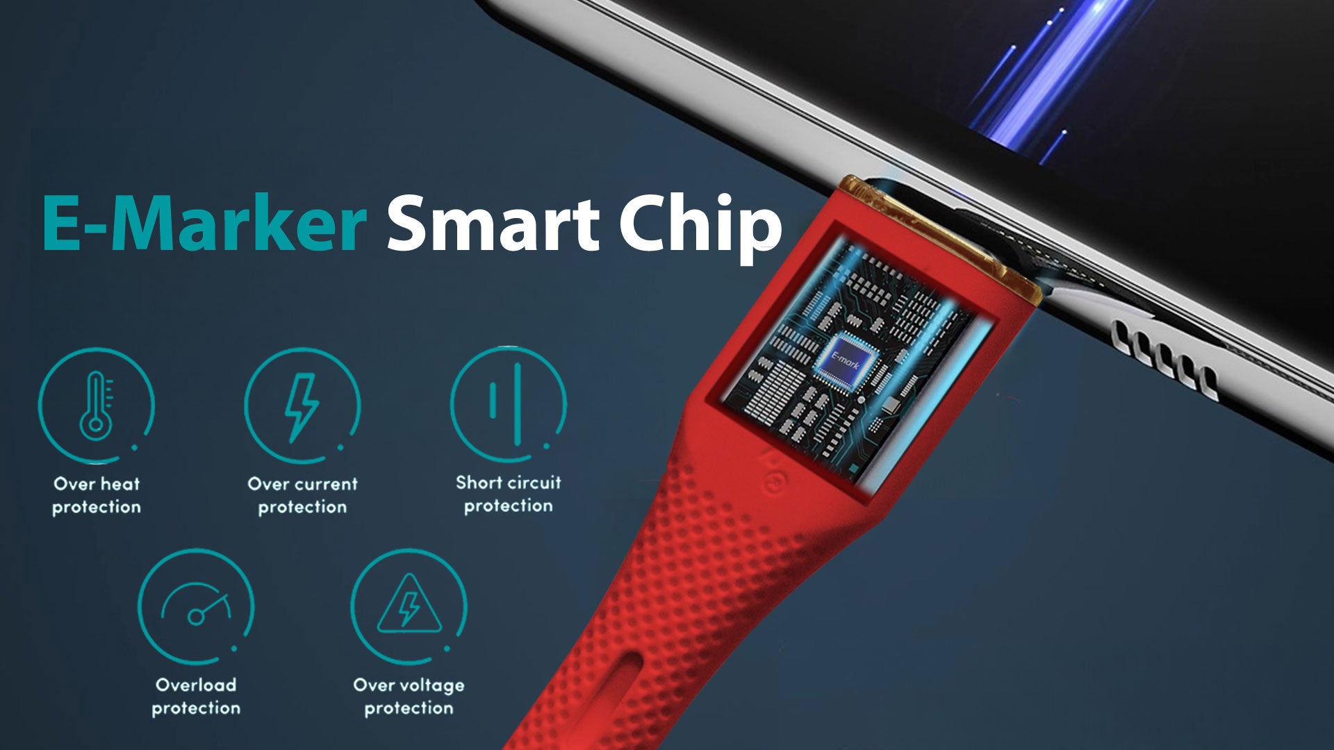 - Advanced E-Marker Chip: Automatically regulates power delivery for safe, stable charging—protects your devices from over-voltage or overheating.