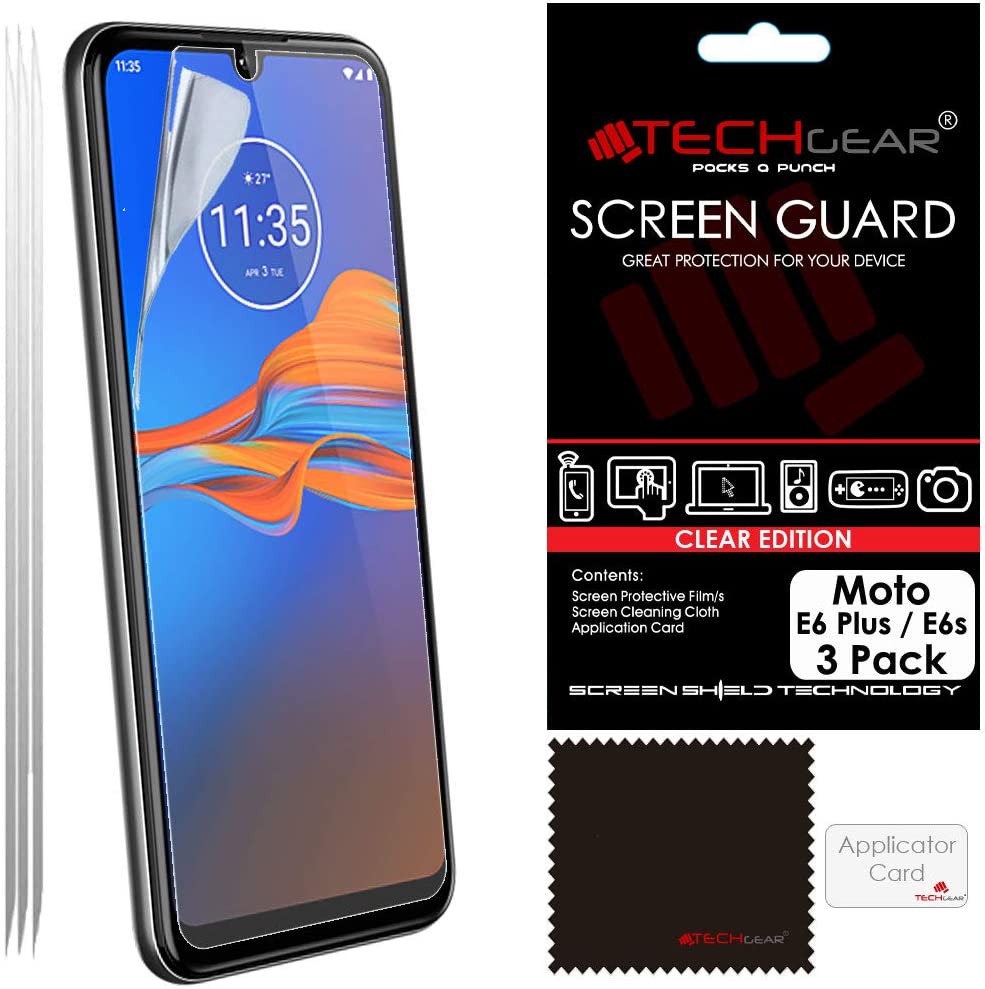 TECHGEAR 3 Pack Moto E6 Plus / E6s Screen Protectors , CLEAR LCD Film Screen Protectors Cover Guards Compatible for Motorola Moto E6s & Moto E6 Plus