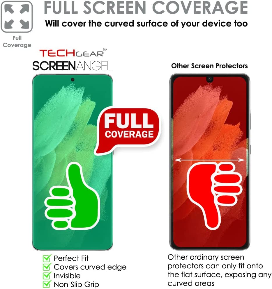 TECHGEAR is a specialist manufacturer of screen protectors for virtually every mobile phone, tablet and handheld gaming devices. These are High quality premium screen protectors for your device. Manufactured from a new ultra high-clarity TPU (Thermoplastic Urethane) material, we've been able to increase the strength, durability and flexibility without impairing screen brightness, clarity or touch sensitivity. These Screen Angel screen protectors are engineered to provide greatly enhanced protection and screen surface area coverage, compared to standard types of screen protectors. The material structure of the shock absorptive and flexible layers has been carefully formulated to provide a level of impact protection unmatched by PET. In addition, this material allows the screen protector to be fitted, and stay affixed onto curved surfaces, allowing for maximum screen coverage. Our screen protector is dry fit, which means you do not need to use water, hence avoiding mess. Our screen protectors are supplied in our own TECHGEAR sealed packaging, this also helps to prevent damage during delivery and makes for a great gift too. Each kit contains a cleaning cloth, application stickers, applicator card, and instructions to make application as simple and as bubble free as possible.