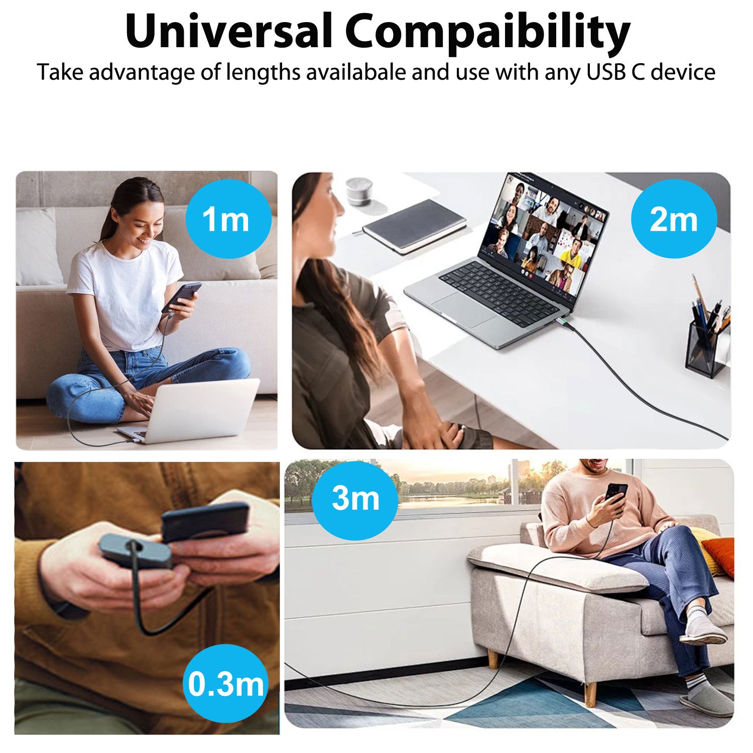 - Multiple Lengths & Packs: Choose 0.3 m, 1 m, 2 m, 3 m, 2-packs and a 3-pack (0.3 m + 1 m + 2 m) for home, office or travel.