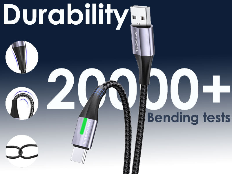 The TECHGEAR 60 W USB-A to USB-C LED Light Cable brings visibility and performance together for everyday charging. A soft, always-on LED light helps you find your device or port in dim settings — perfect for bedside charging, offices and cars.