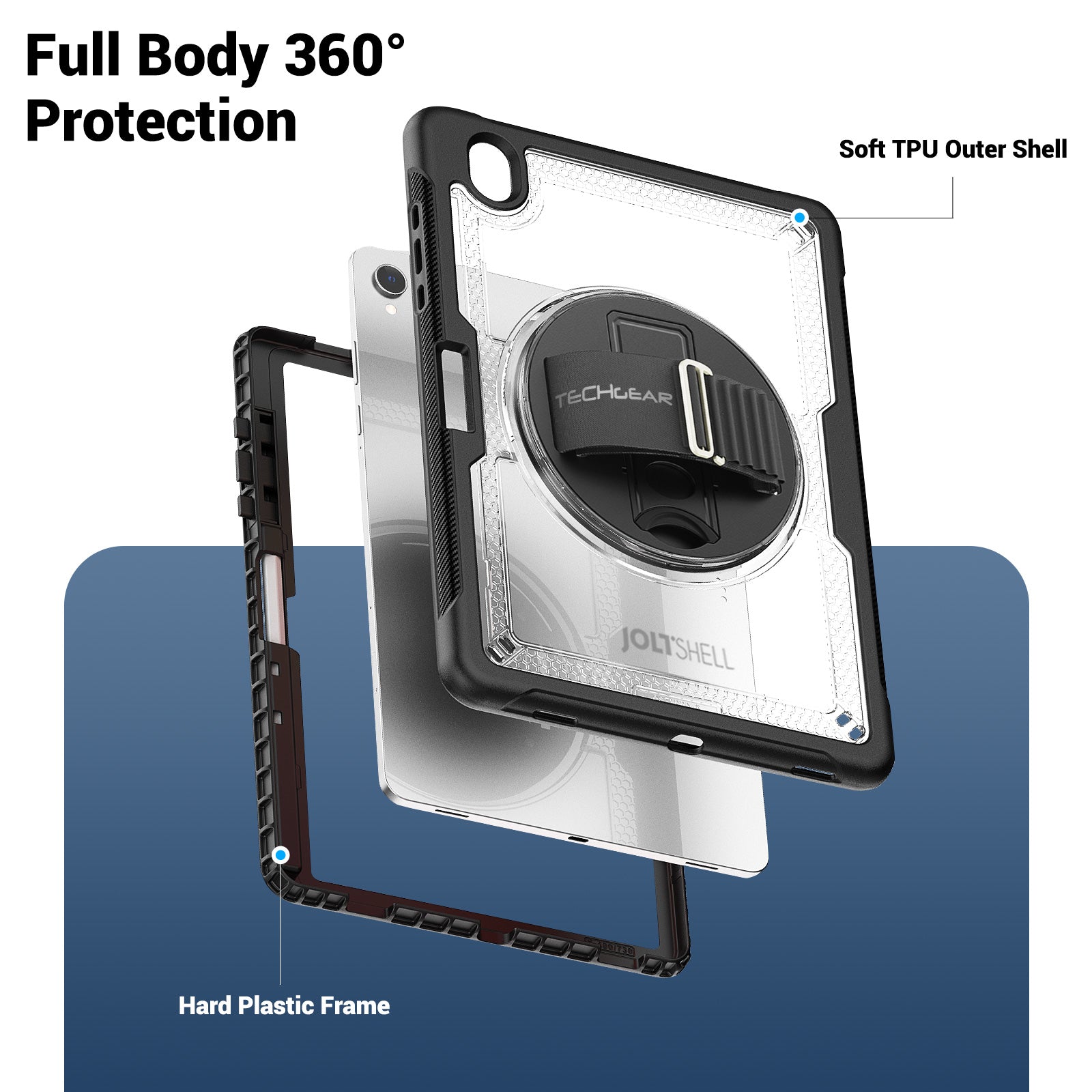 TECHGEAR JOLT Case for Samsung Galaxy Tab S11 11" (SM-X730 / SM-X736) – Slim Rugged Case with S-Pen Holder, 360° Stand, Hand Strap & Shoulder Strap