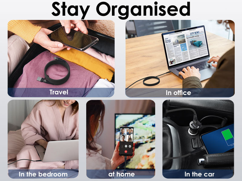 - Magnetic Coiling Design: Smart magnets let the cable self-coil neatly—no knots or tangles. Ideal for desks, travel bags, and tidy workspaces.