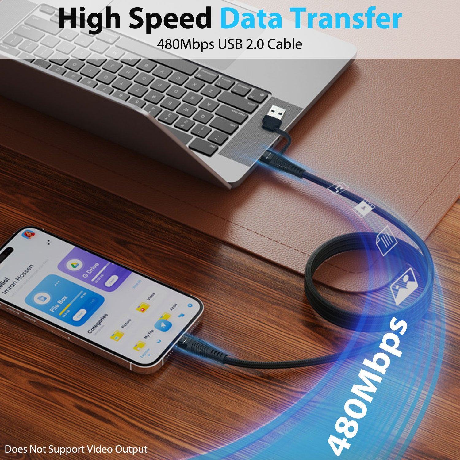 - 2-in-1 Connection: Charge or sync from USB-A or USB-C sources to any USB-C device—one cable replaces two.