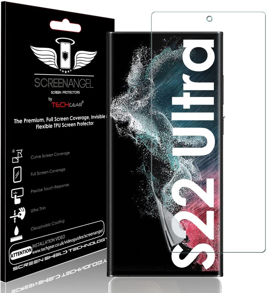 TECHGEAR Screen Protector fits Samsung Galaxy S22 Ultra [Screen Angel Edition][Case Friendly] [Bubble Free] [FULL Screen Coverage] TPU Film