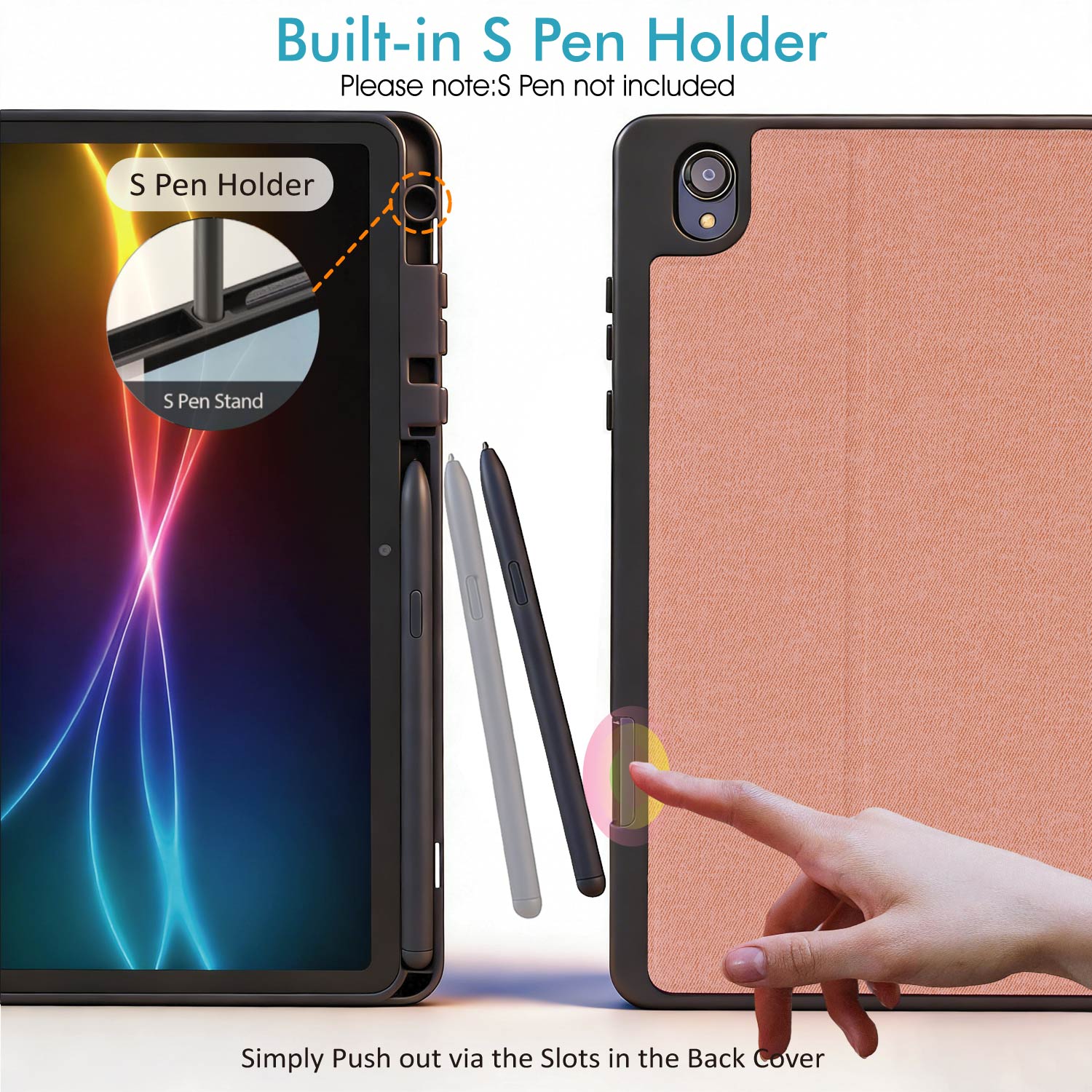 Integrated S Pen holder keeps your Samsung S Pen secure, organised and always within reach. Designed to prevent loss during transport or daily use. (S Pen not included)