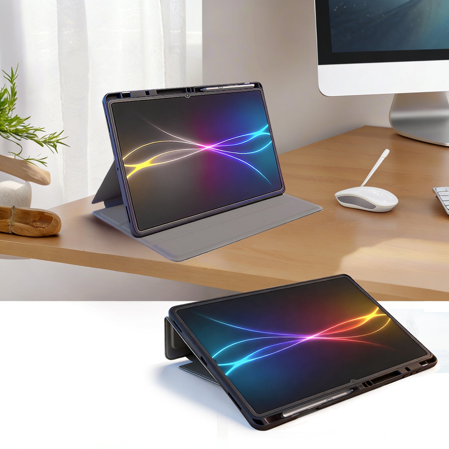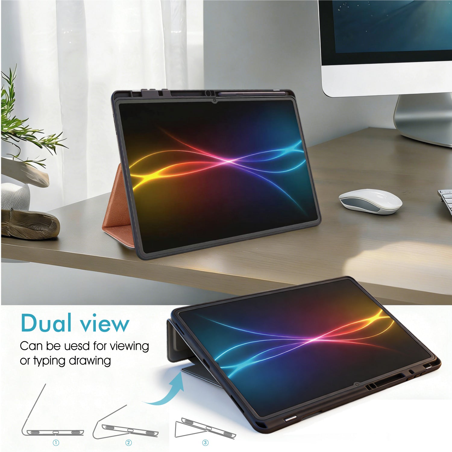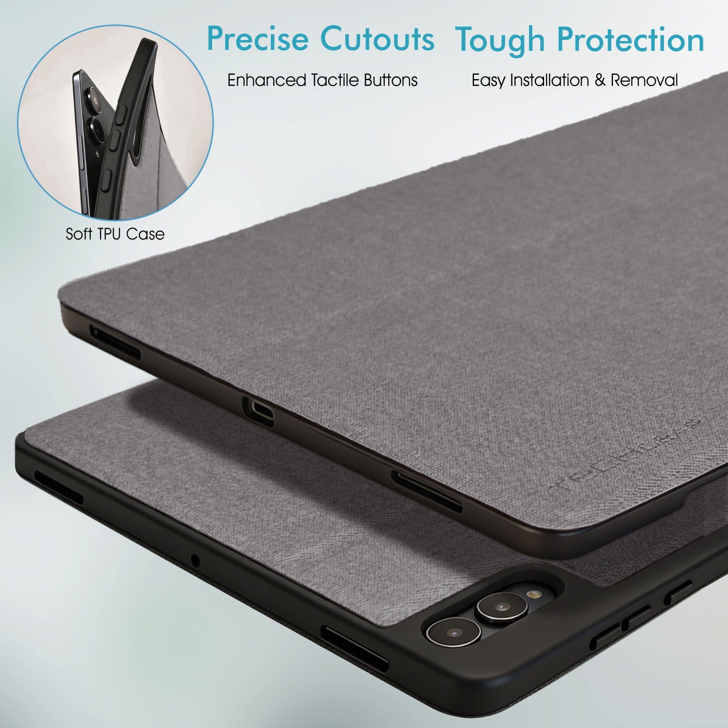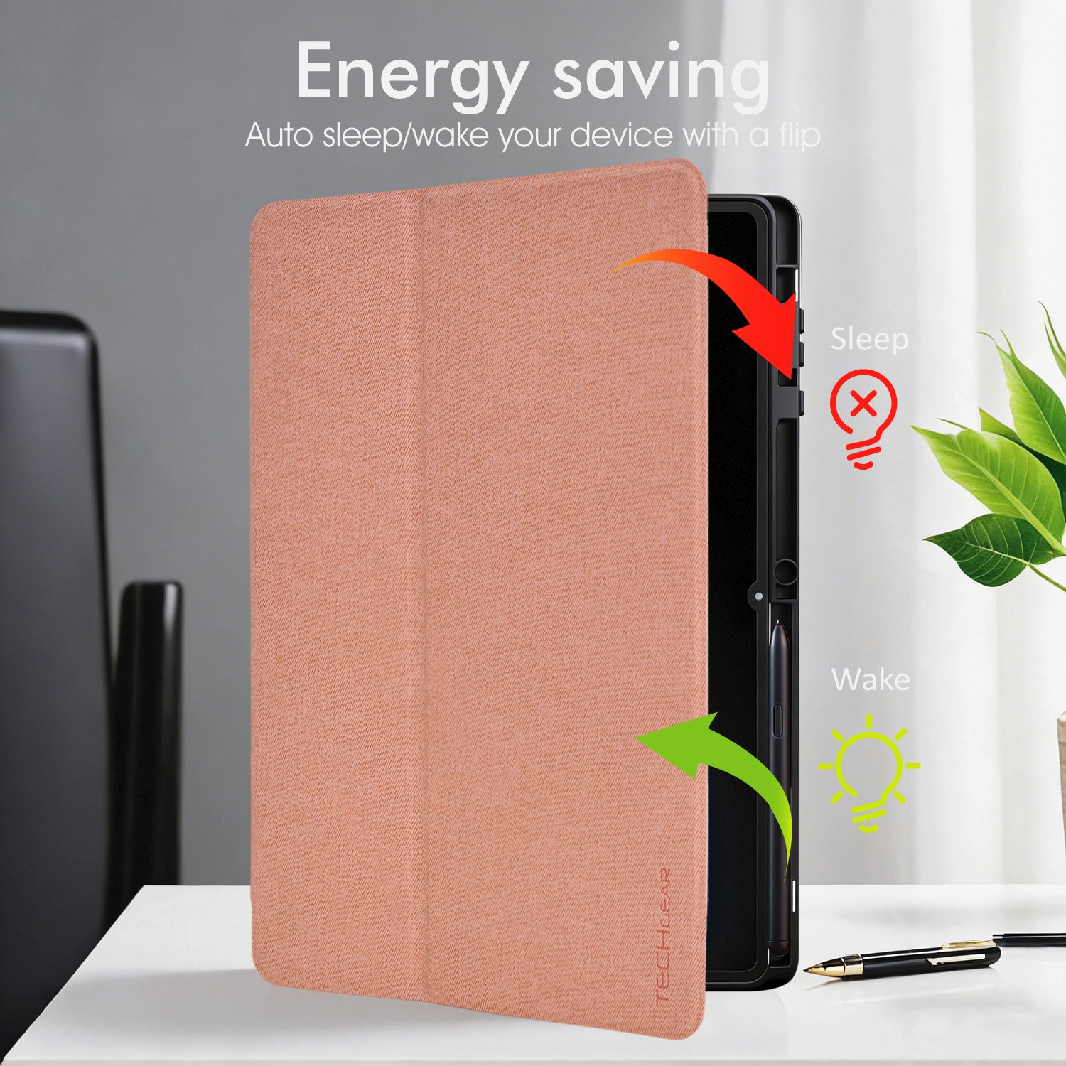 Magnetic front cover automatically wakes your tablet when opened and puts it to sleep when closed, helping reduce unnecessary battery drain and improving everyday efficiency.