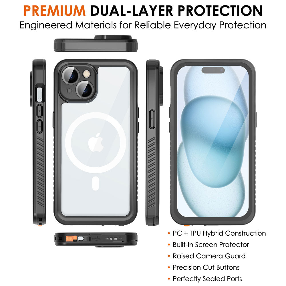 TECHGEAR Waterproof MagSafe Charging Case for iPhone 15 6.1" – IP68 Shockproof 360° Full Body Sealed Cover with Built-In Screen Protector