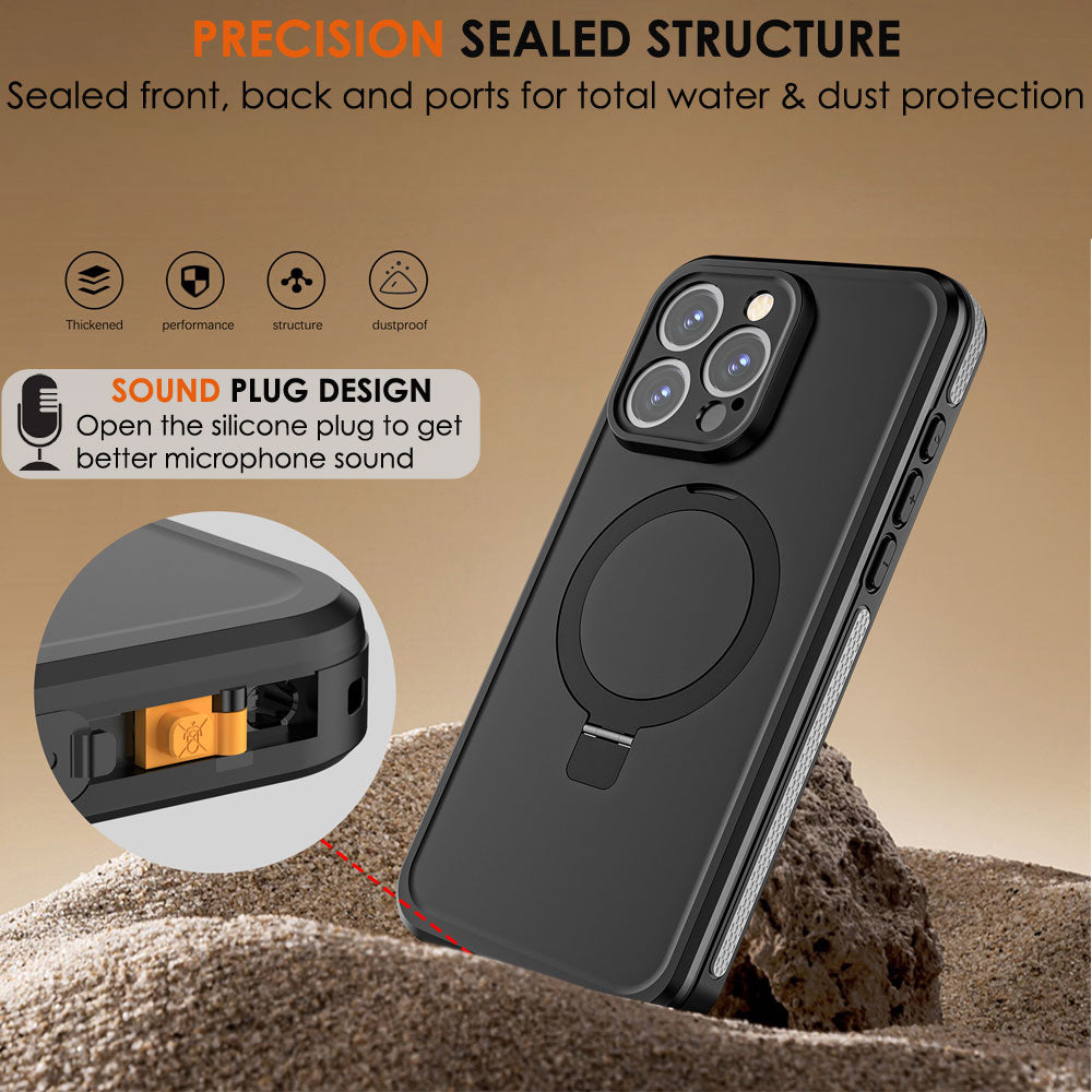 The TECHGEAR Waterproof Magnetic Stand Case is precision engineered for the iPhone 15 Pro Max 6.7". Built for demanding environments, this heavy duty full body case delivers certified waterproof protection, reinforced drop resistance and reliable MagSafe charging compatibility while maintaining full performance and everyday usability.