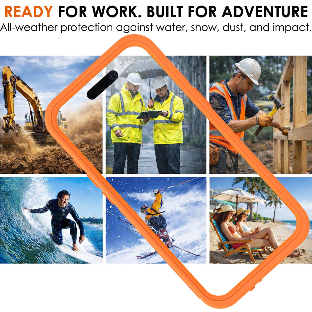 The IP68-rated structure protects your device from water, dust and debris in harsh environments. Reinforced corners and hybrid PC + TPU materials absorb impact from accidental drops, making it suitable for construction sites, travel, outdoor sports and daily heavy use.