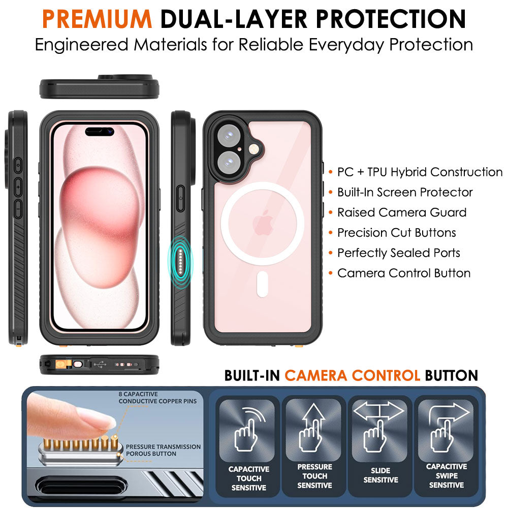 IP68 Waterproof Full Body Protection for iPhone 16 with Camera Control Support